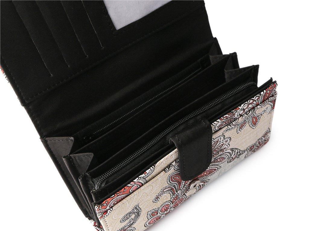 Elegantní dámská peněženka má velice kvalitní provedení. Nadchne vás svým potahem s paisley motivem. Uvnitř má vynikající uspořádání se spoustou přihrádek a kapes.
