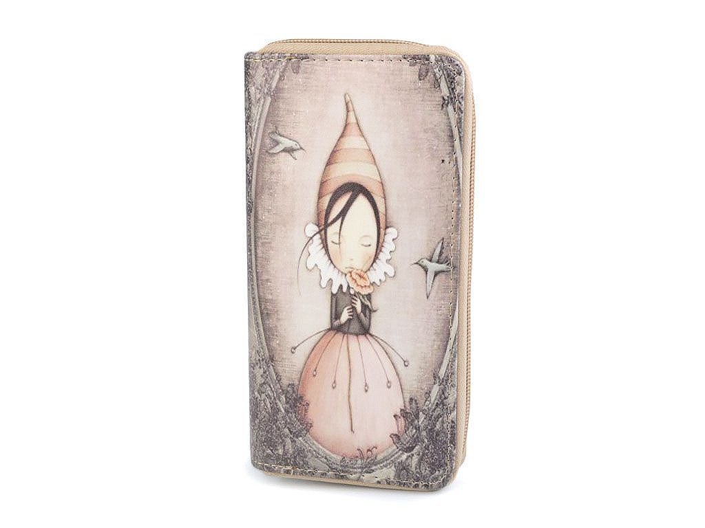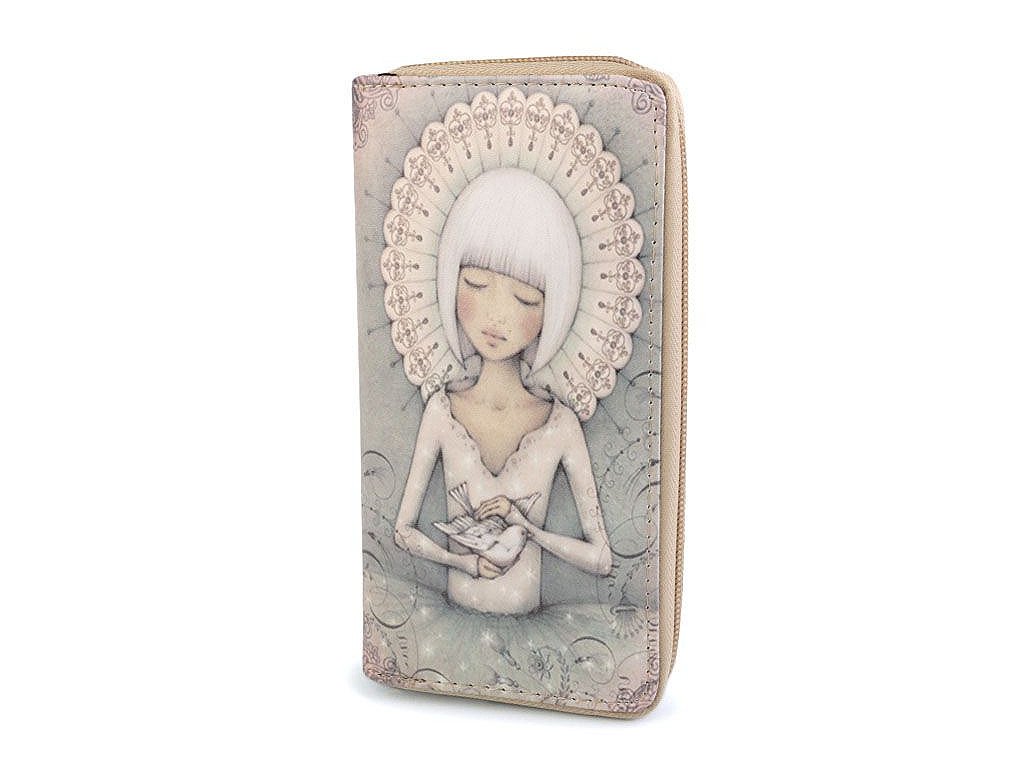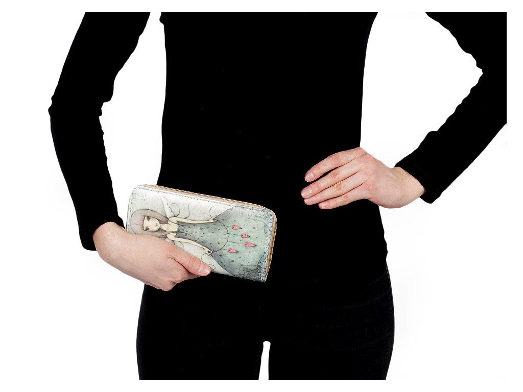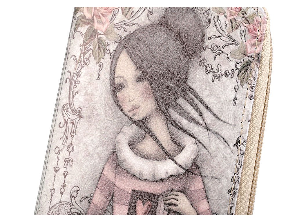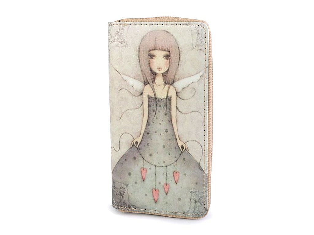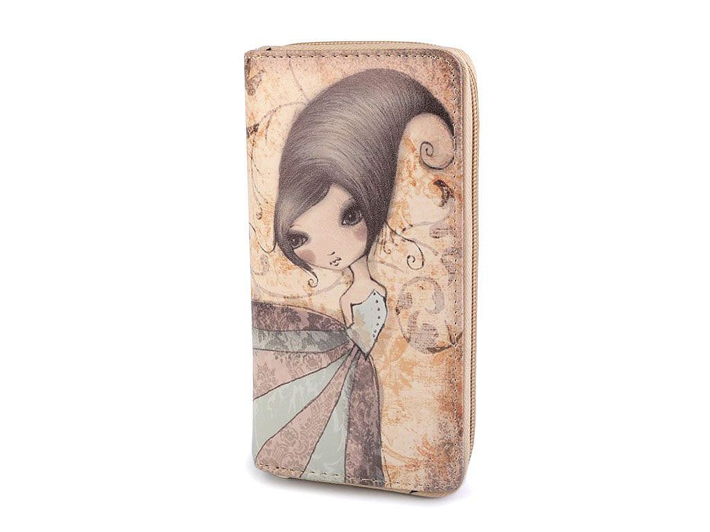 Vintage peněženku si zamilují všechny romanticky založené ženy i dívky. Zdobí ji kouzelné obrázky dívek, které vypadají jako by vystoupily z pohádky. Peněženka je vyrobená z eko kůže a je velmi prostorná. Má vnitřní členění pro vkládání dokladů. Obsahuje tři velké přihrádky na papírové bankovky a uzavíratelnou kapsu na drobné mince na zip. Přihrádek na kreditní karty nebo vizitky je osm. Uvnitř na bocích jsou ještě dvě dlouhé přihrádky, do kterých se vejdou např. účtenky.