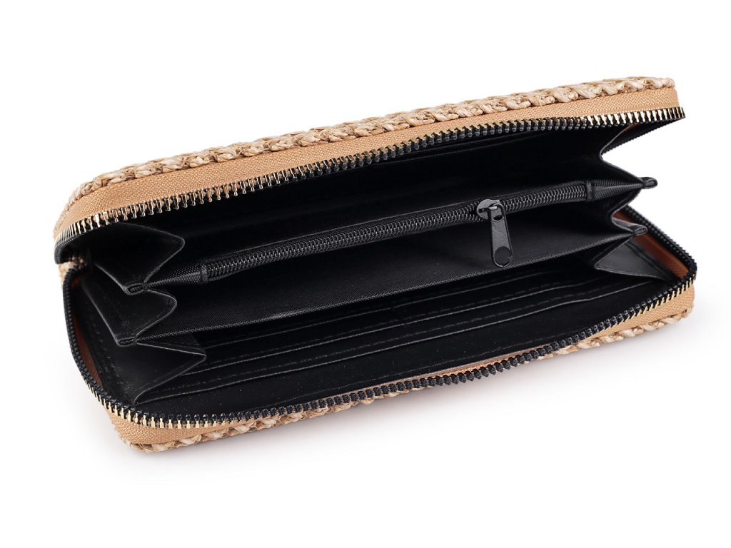 Dámská peněženka vás zaujme svým proplétaným potahem, který věrně imituje slámu.