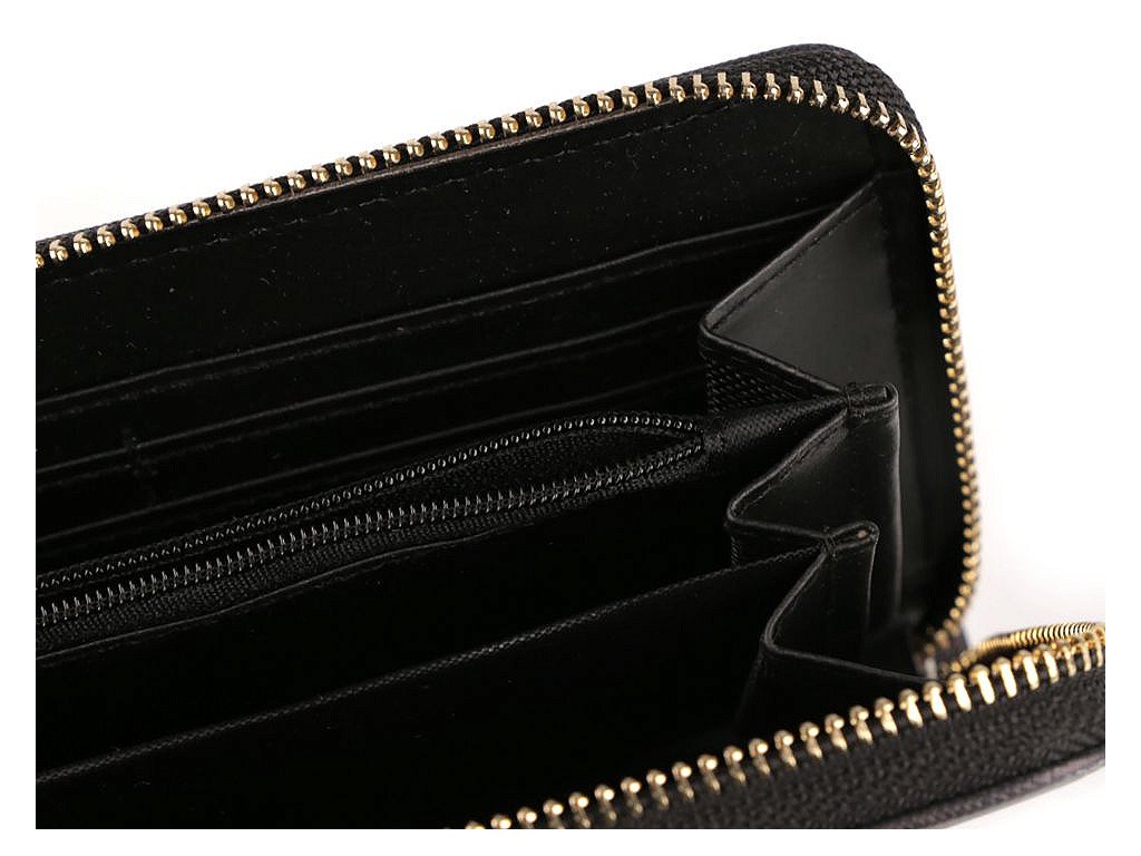 Peněženka obsahuje jednu hlavní kapsu, která se zapíná na kovový zip. Je velmi prostorná, vejde se do ní i mobilní telefon. Uvnitř je peněženka členěna do tří velkých přihrádek na papírové bankovky a jedné uzavíratelné kapsy na zip, vhodné k ukládání mincí a různých drobností. Po vnitřních stranách peněženky je rozmístěno osm přihrádek na karty a dvě větší na doklady, účtenky apod.