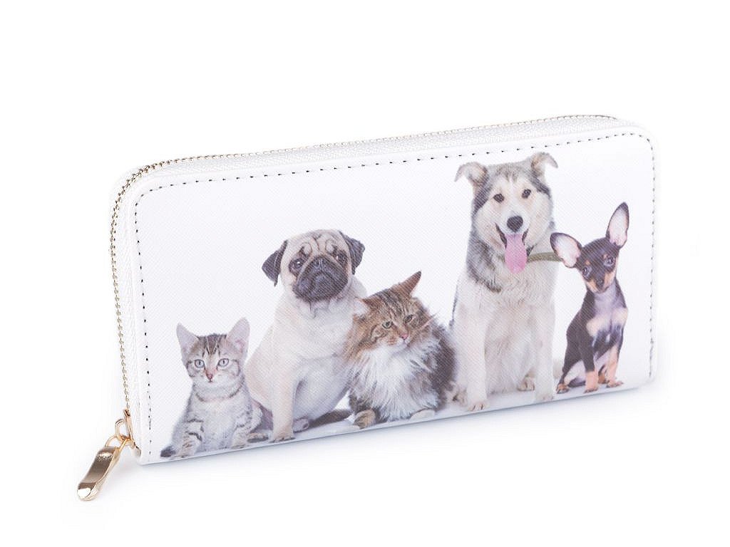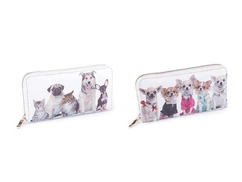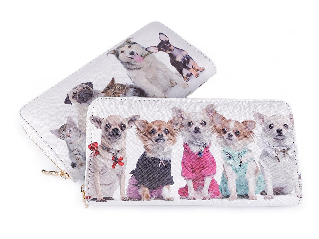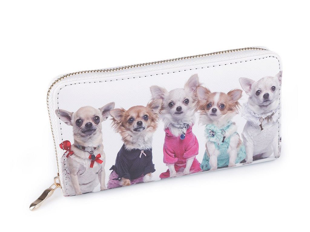 Dámská peněženka s pejsky uschová vaše mince, bankovky a různé drobnosti. Je dostatečně prostorná, pohodlně tak do ní schováte také svůj mobilní telefon.