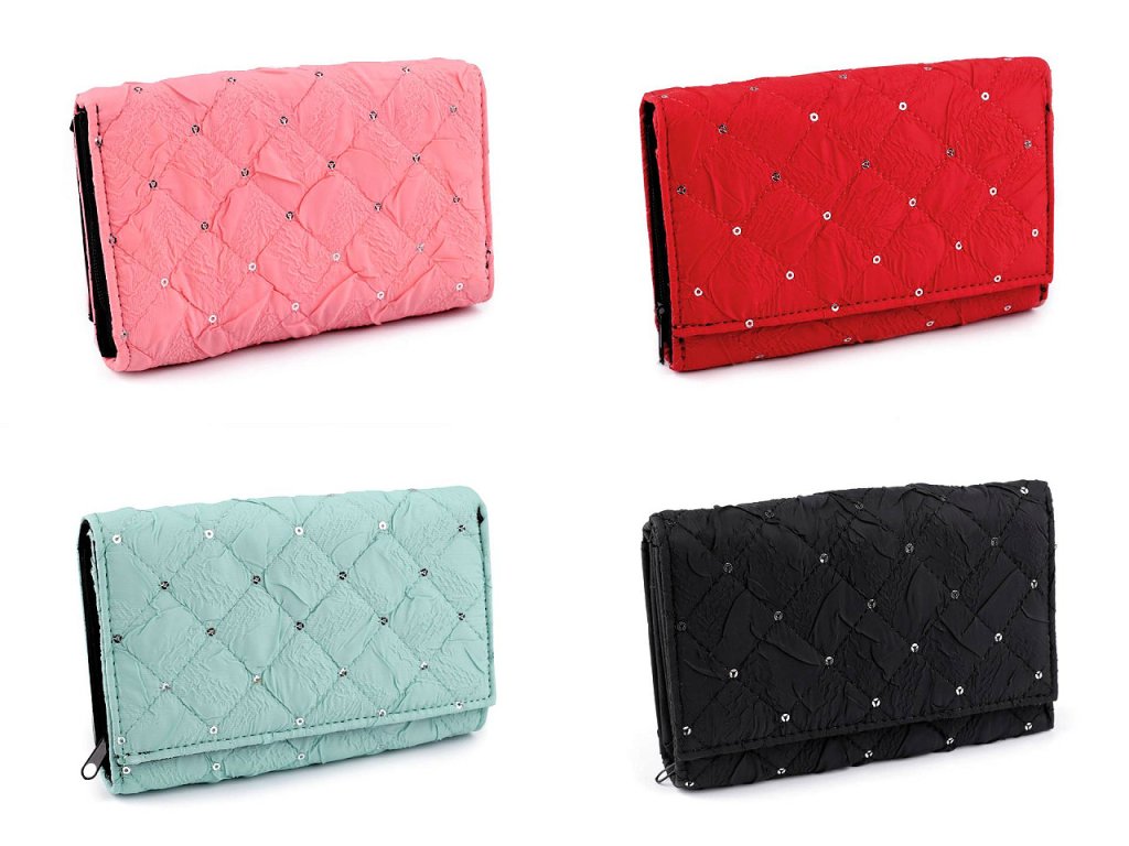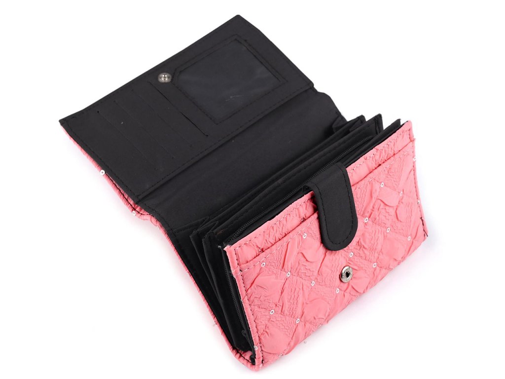 Dámská prošívaná peněženka s flitry má velice poutavý design. Textilní potah je příjemný na dotek. Nadchne vás svým vnitřním uspořádáním se spoustou přihrádek a kapes.