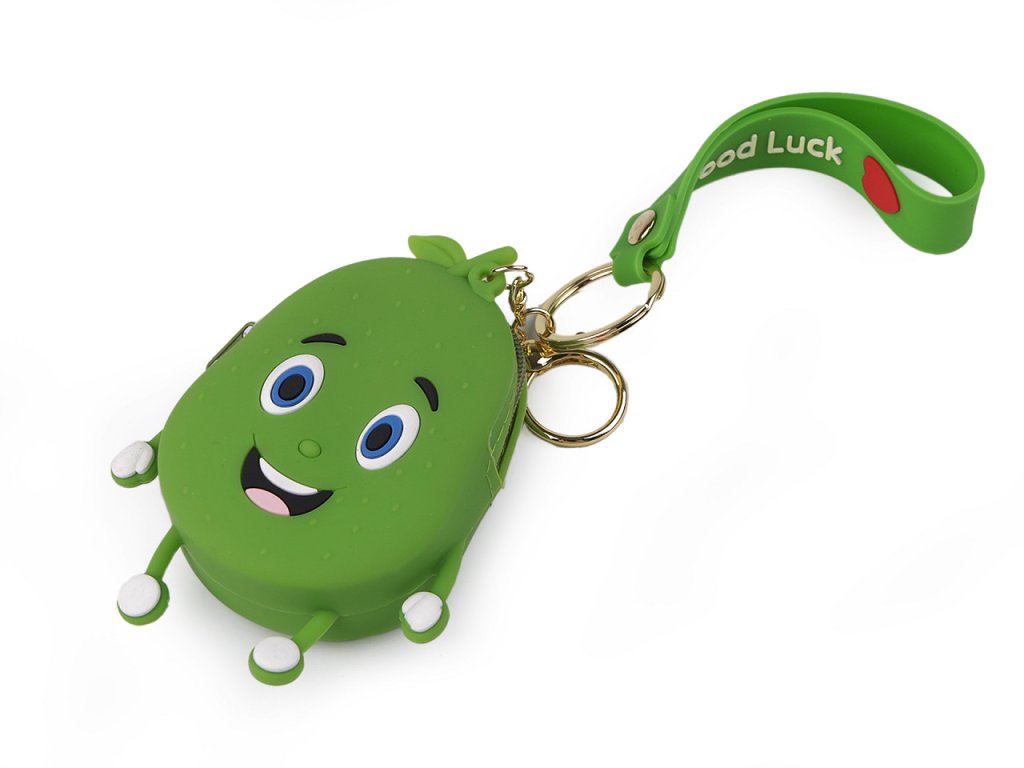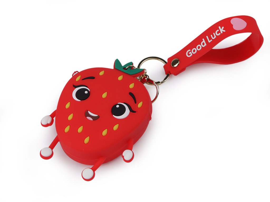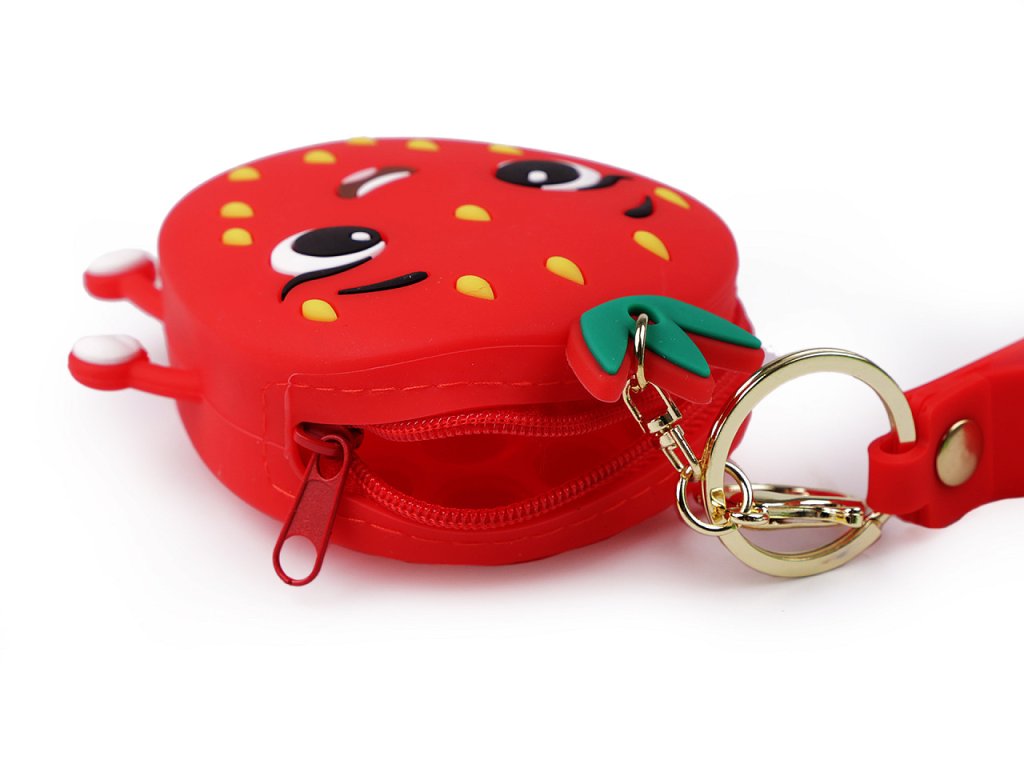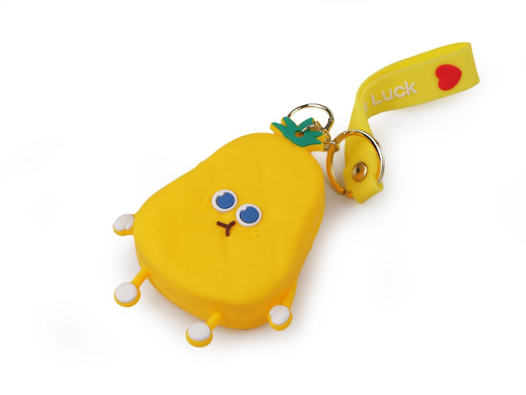 Malá silikonová peněženka ve tvaru ovoce s poutkem a karabinou se dá využívat i jako klíčenka. Zavírá se na zip. Na přední straně má motiv obličeje, na zadní straně najdete antistresové bublinky, se kterými je zábava při dlouhé chvíli.