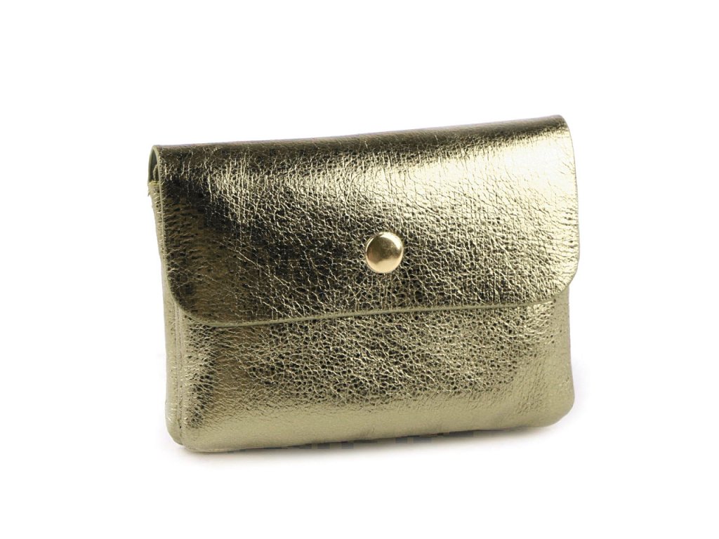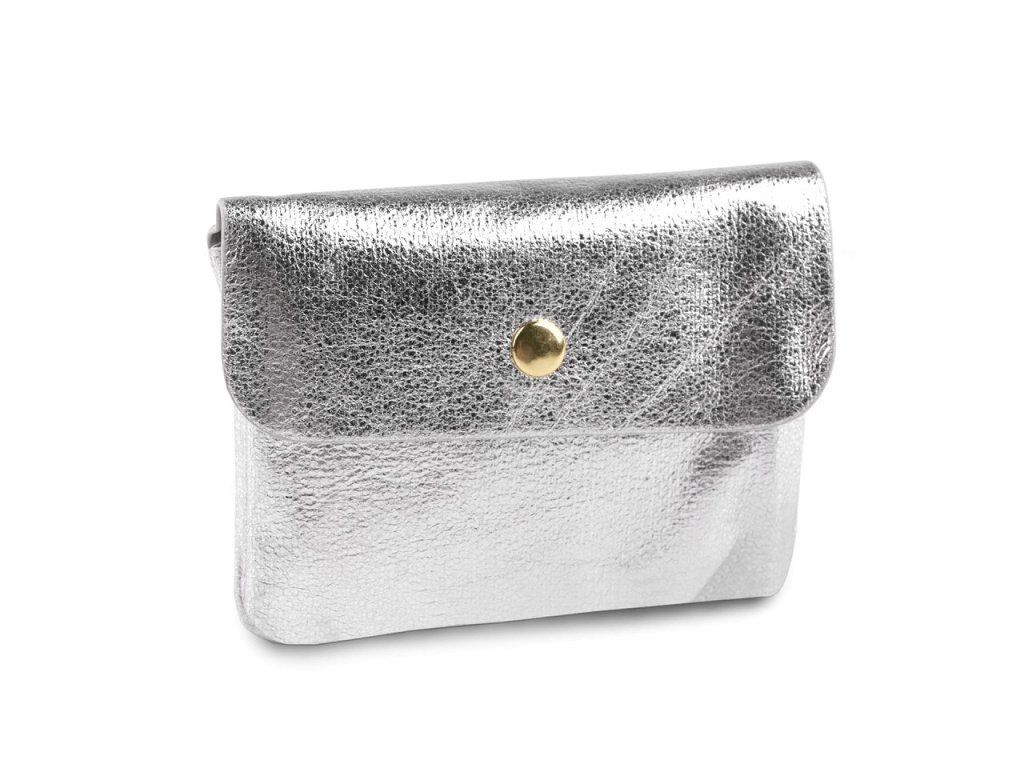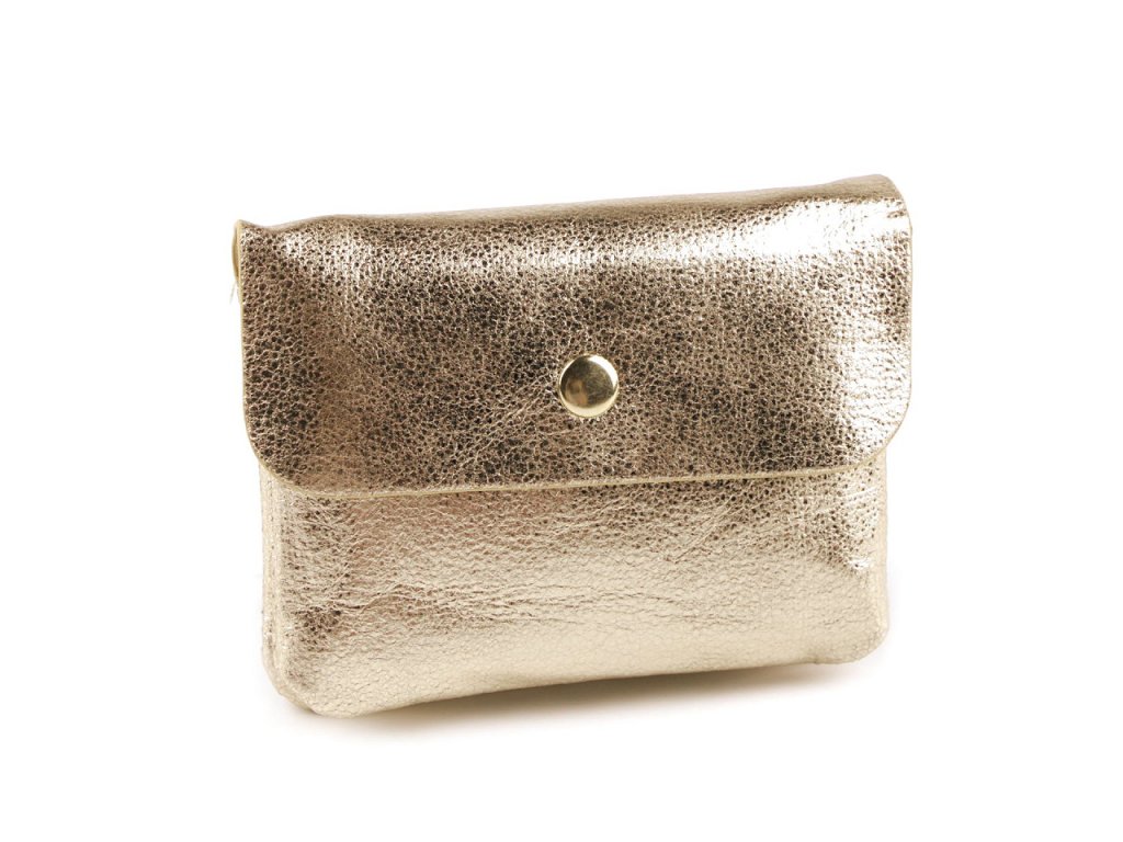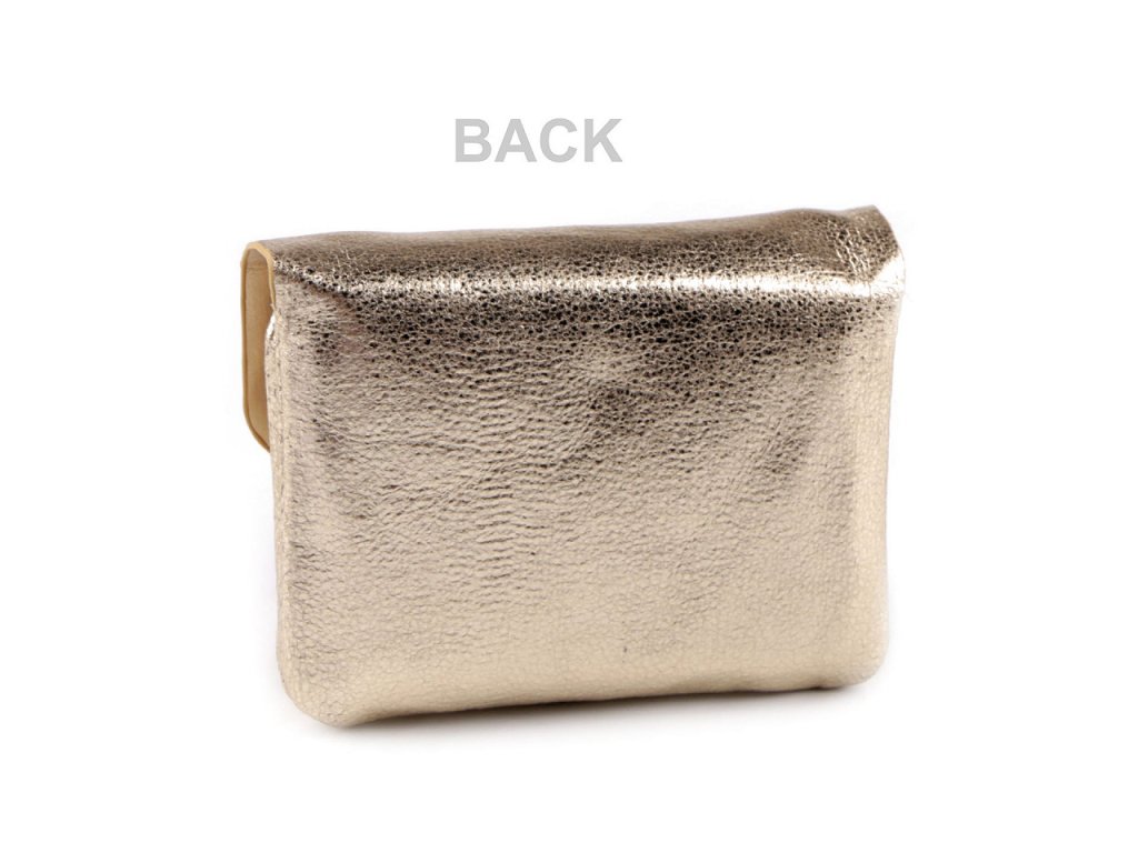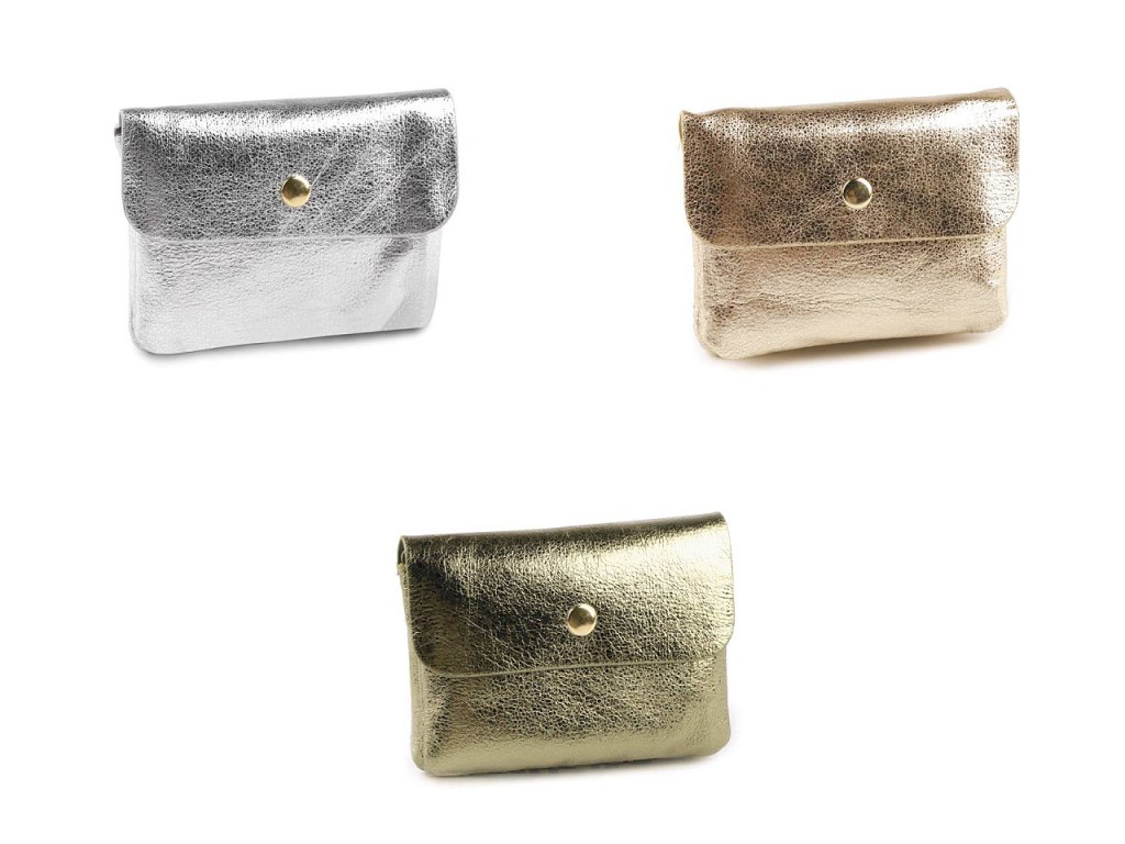 Dámská peněženka s metalickým povrchem upoutá na první pohled. Je lehká jako pírko, klopa se zapíná na patent. Uvnitř je členěná na 2 přihrádky na bankovky a doklady a mincovník s uzavíráním na zip.