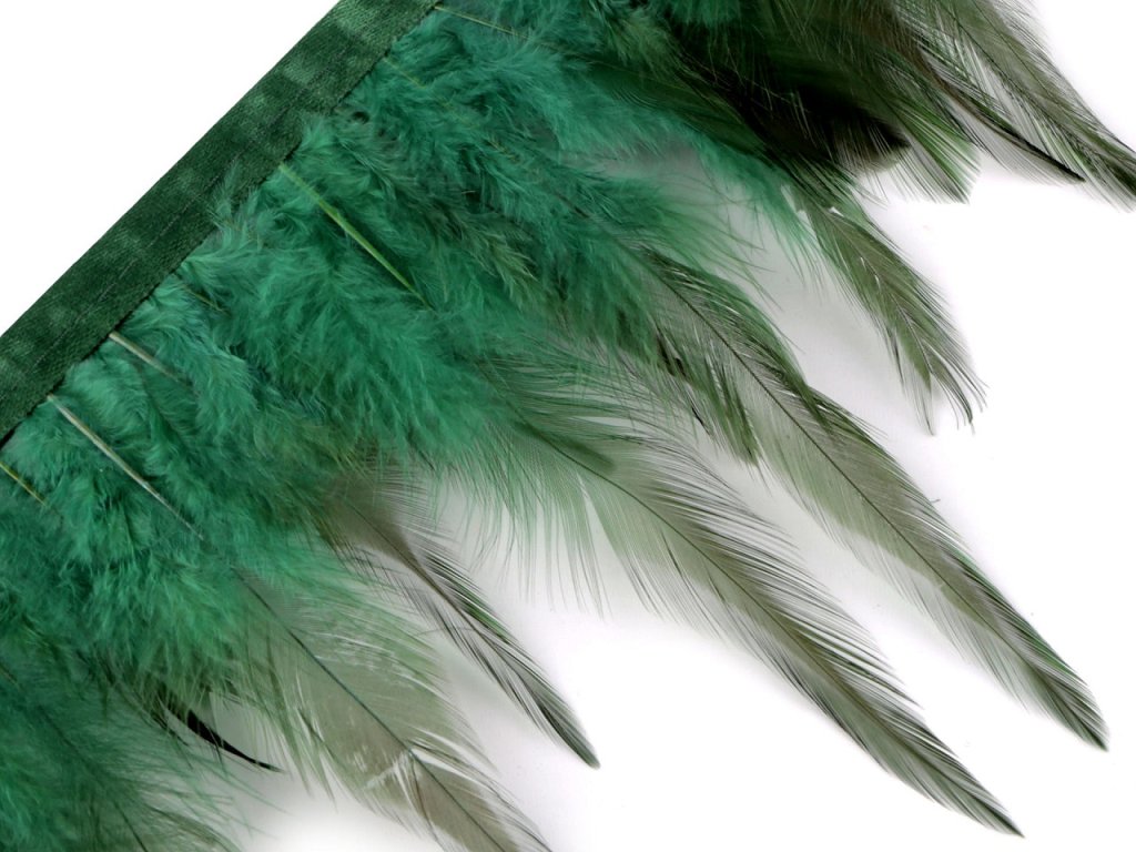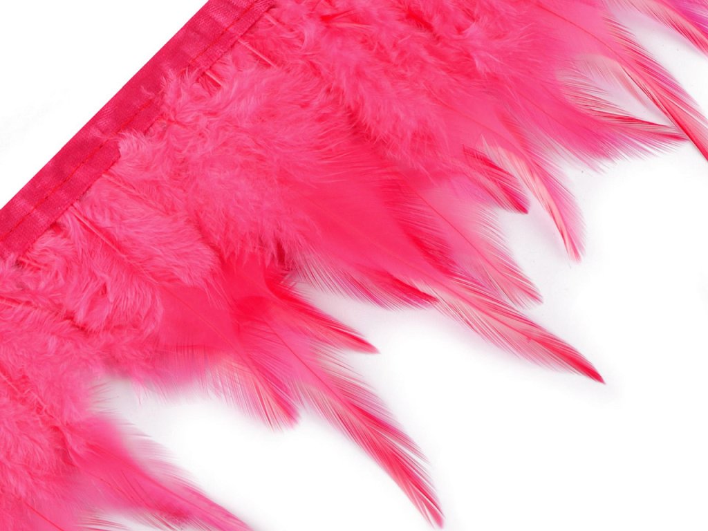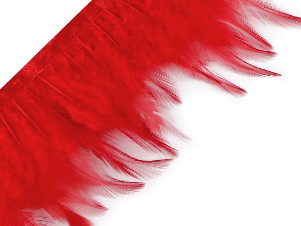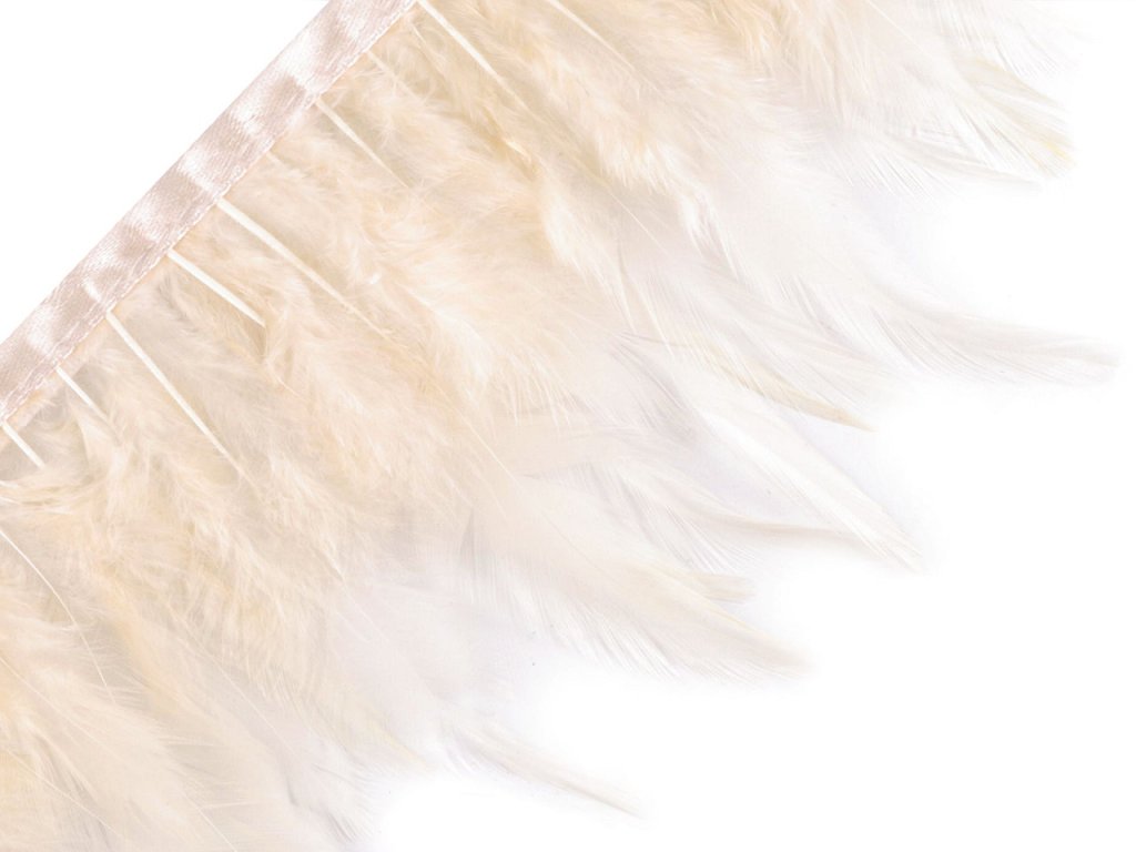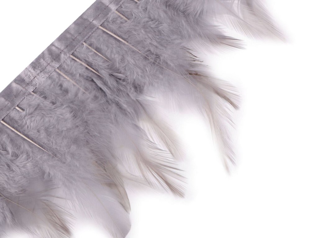 Prýmek z kohoutího peří originálně ozdobí plesové a společenské šaty, taneční i divadelní kostýmy a doplňky. Je vyrobený z jemného kohoutího peří, které vyniká svou lehkostí a vzdušností. Na oděvech vytváří bohatý a extravagantní vzhled, který zaujme na první pohled. Peří je pevně prošité do saténové stuhy, díky které se prýmek snadno přišívá.