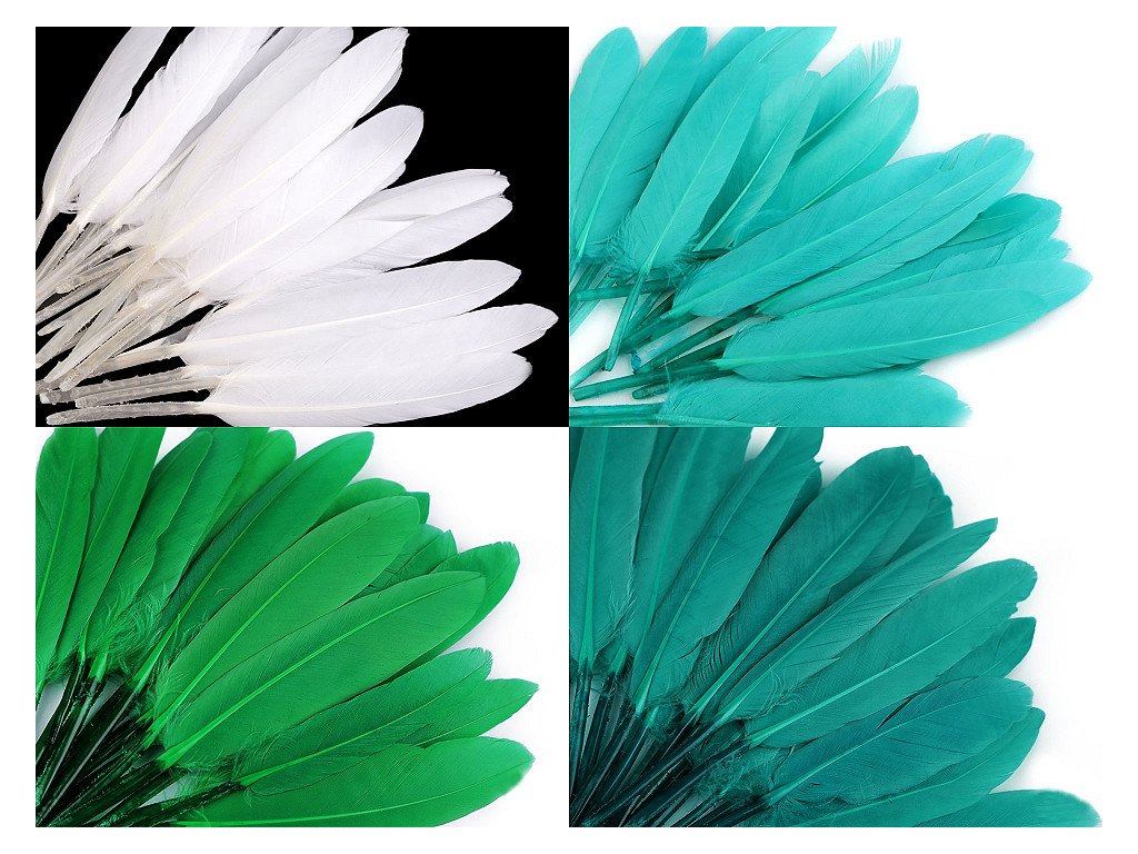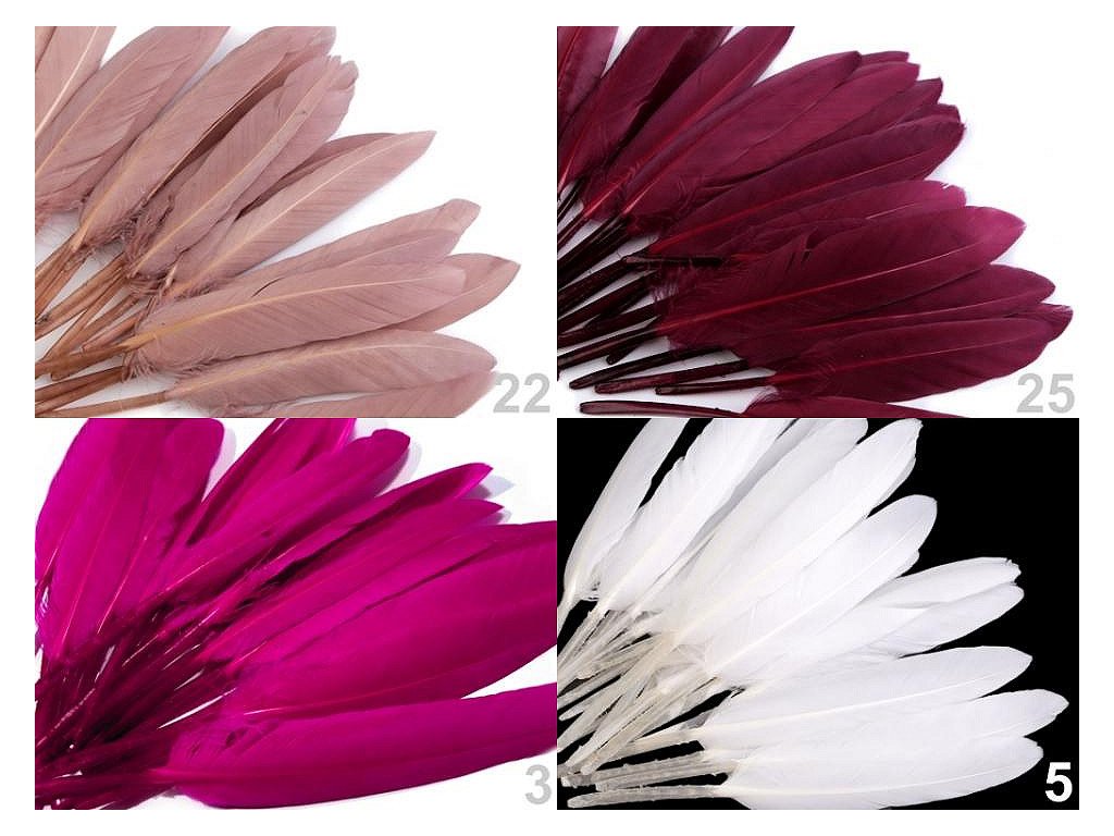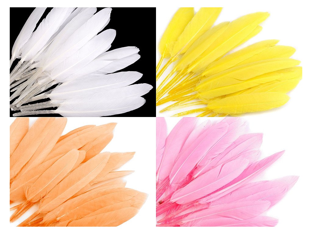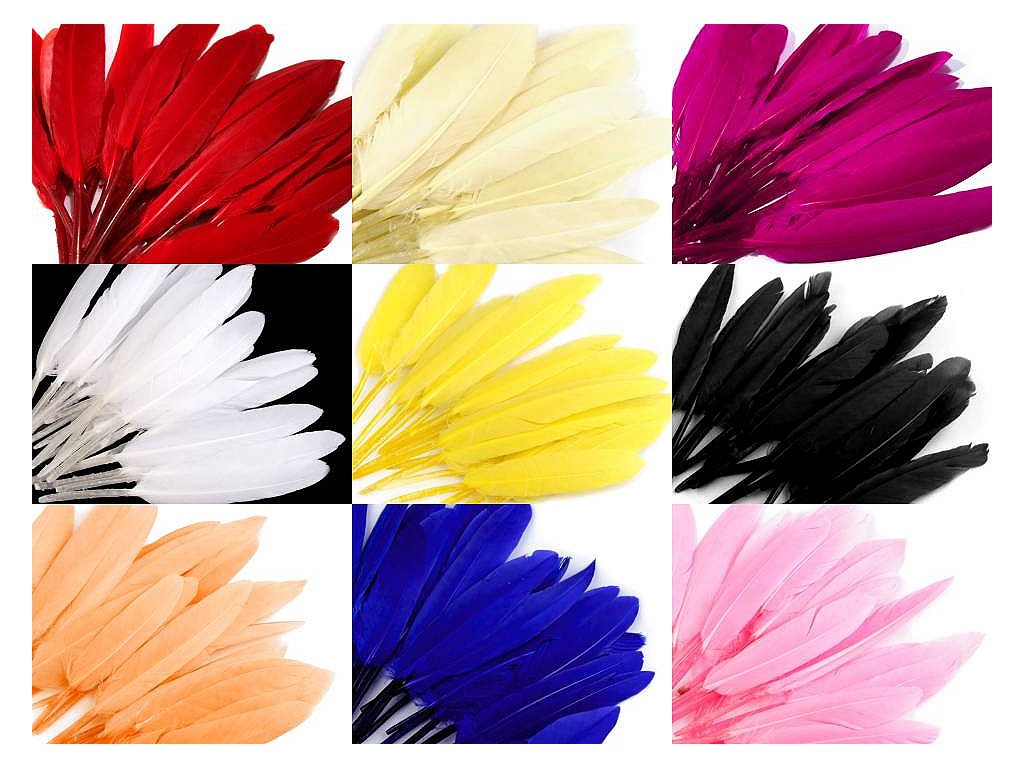 Kachní peří je uměle barvené (určeno pouze k dekoračním účelům, nebezpečí zabarvení). V jednom sáčku je 20 ks peří.