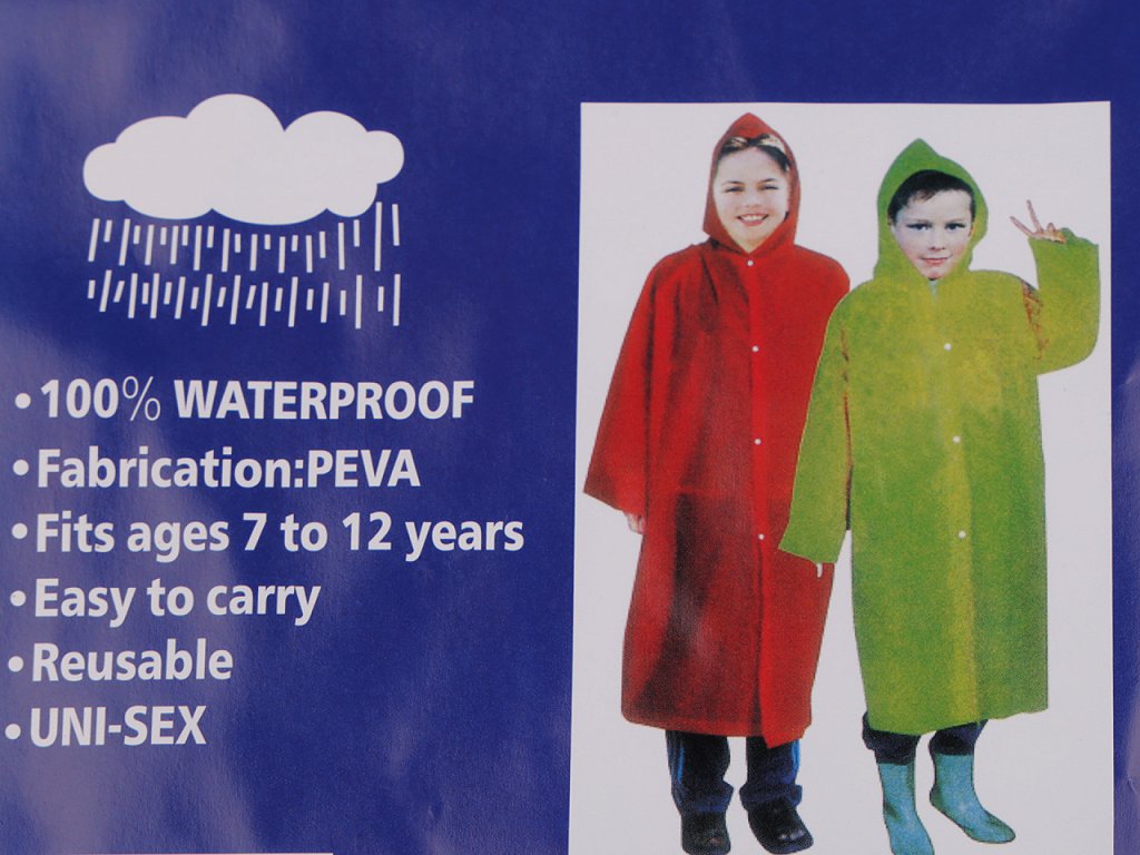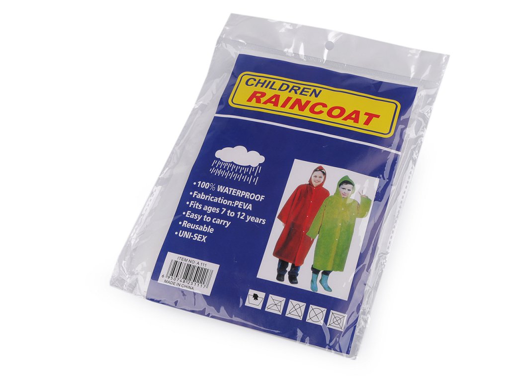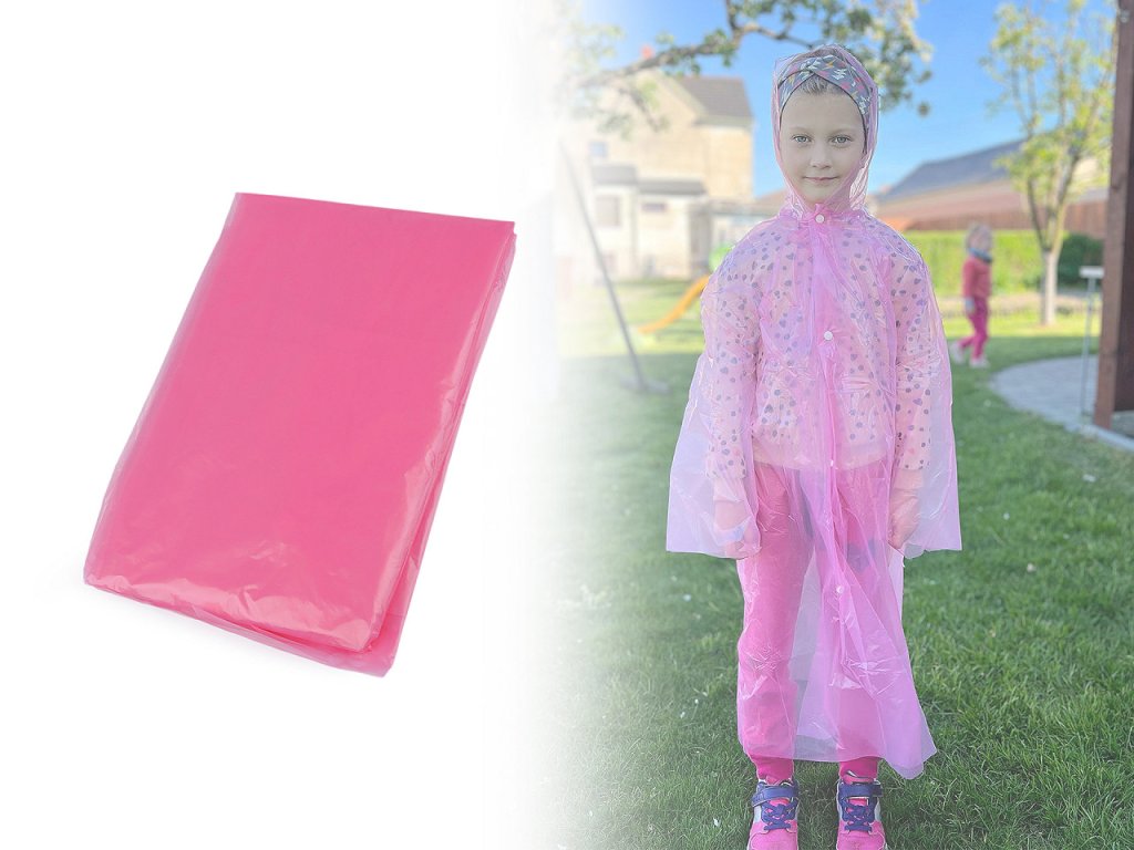 Dětská pláštěnka se hodí kamkoliv, kde by děti mohl přepadnout déšť. Je skladná a lehká, vejde se do každého batůžku nebo tašky. Pláštěnka se zapíná na druky, je vložená do plochého sáčku.