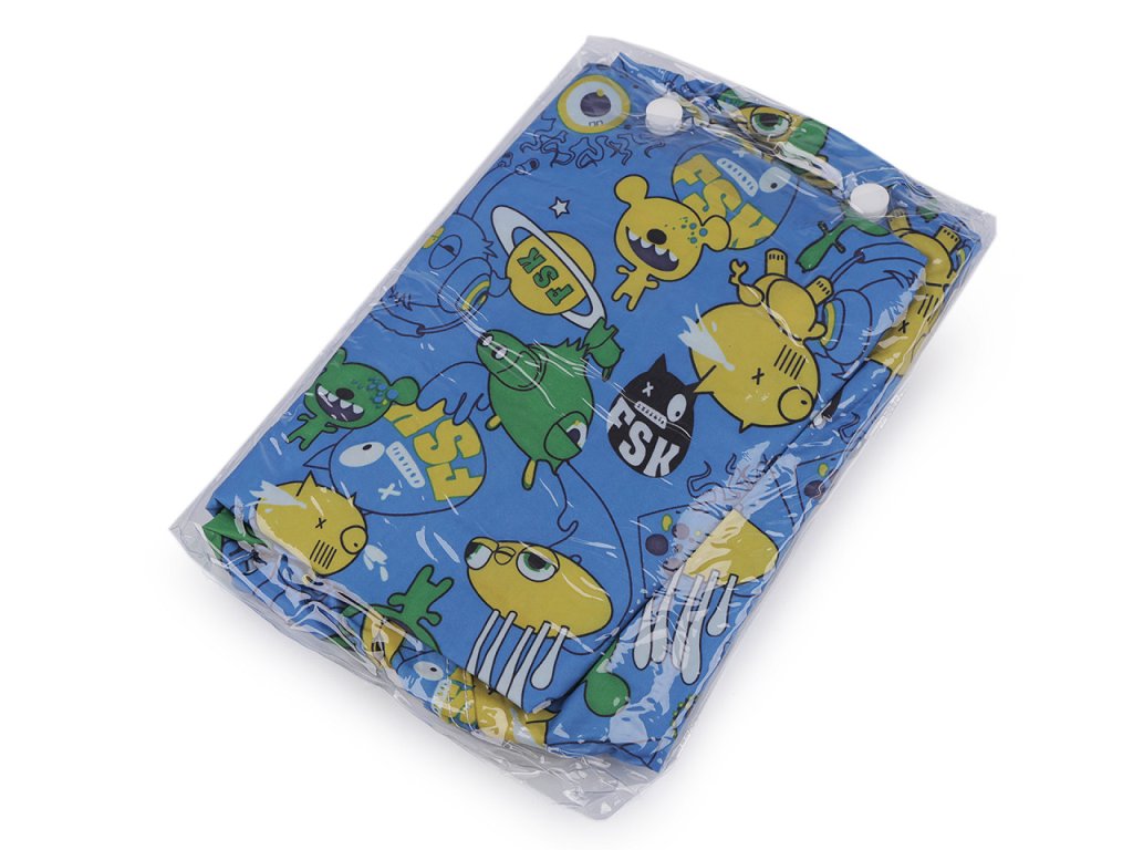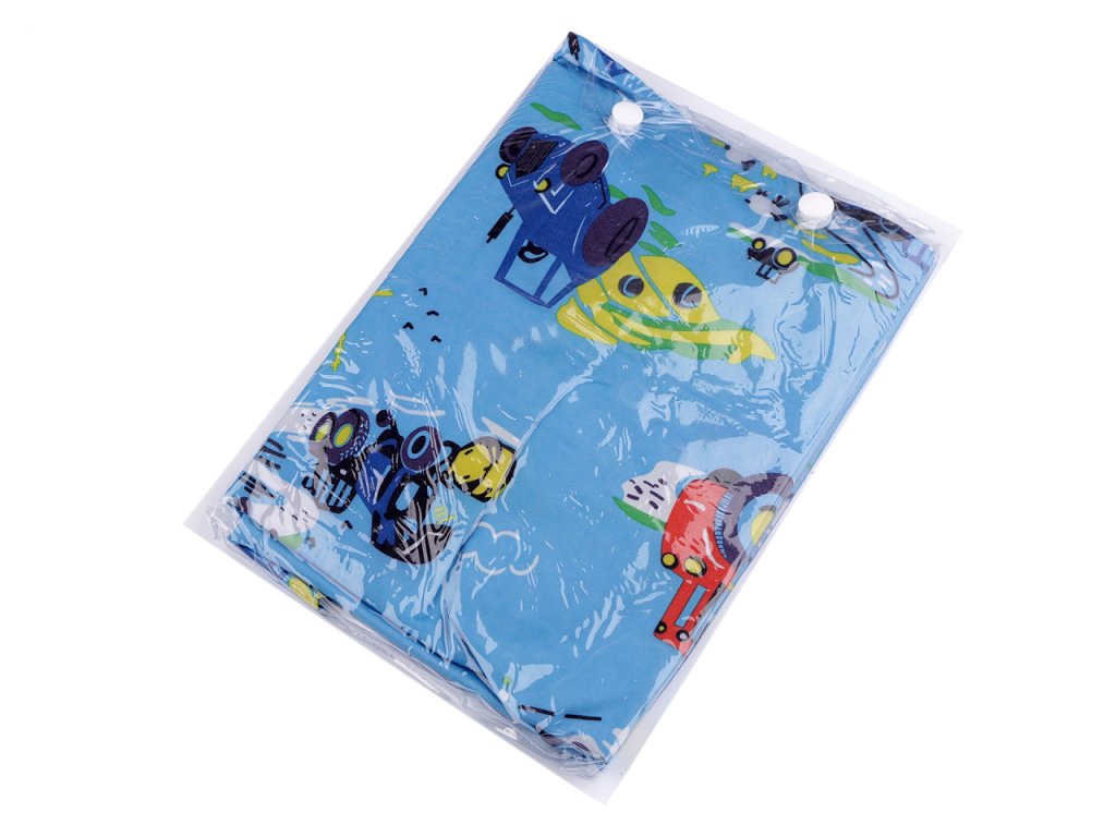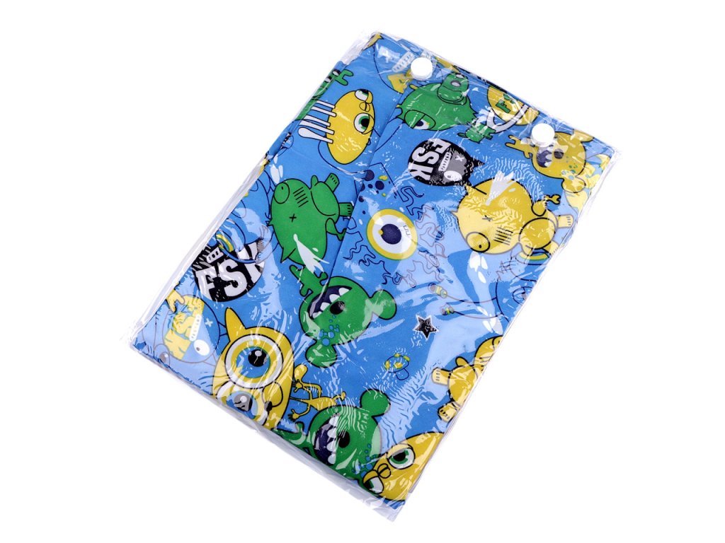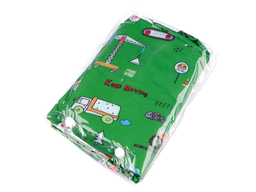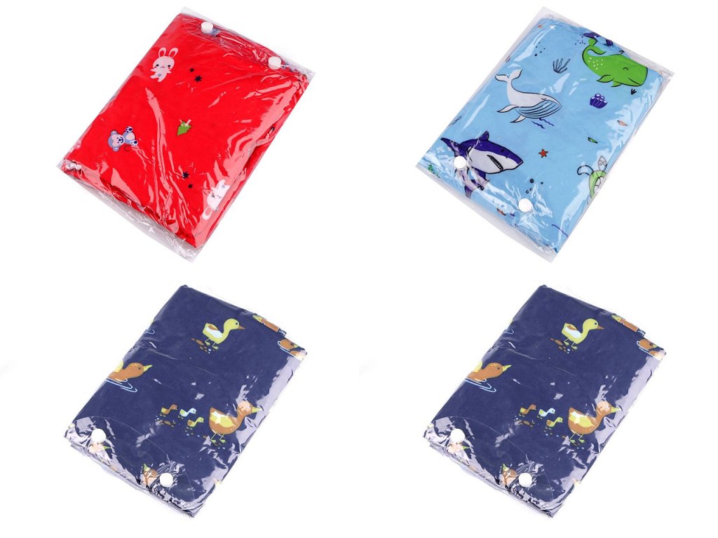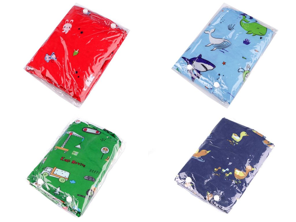 Kvalitní dětskou pláštěnku s veselými barevnými obrázky si děti oblíbí na první pohled. Je vyrobená z velice pevného materiálu. Zapíná se na druky. Kapuce má stahovací šňůrku. Pláštěnka je zabalená v ochranném pouzdru.