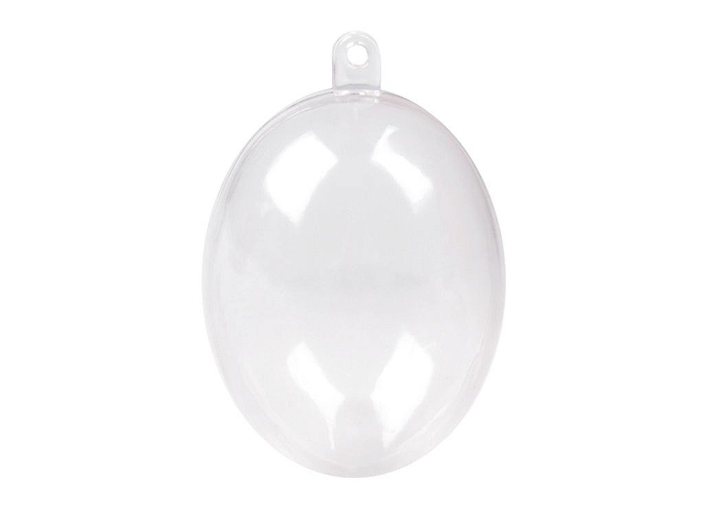 Průhledné plastové vejce se skládá ze dvou částí, které lze spojit a pomocí očka zavěsit jako dekoraci. Jedná se o polotovar, který je určen k dozdobení např. jej můžete obháčkovat, dekorovat metodou quilling, ubrouskovou technikou, dozdobit glitry atd.