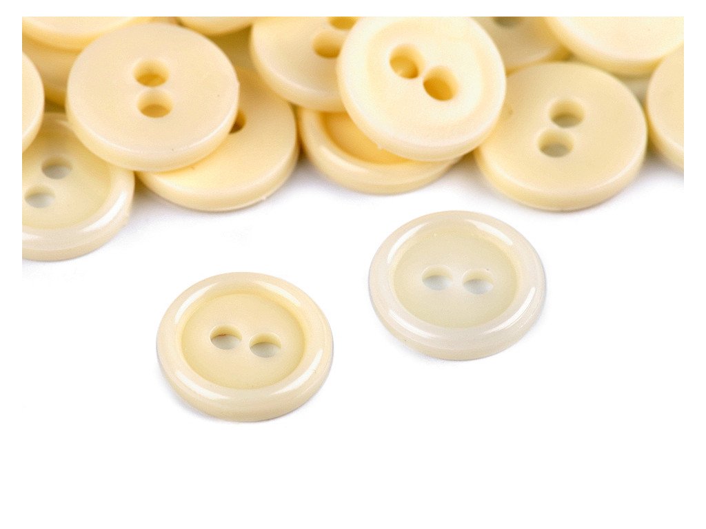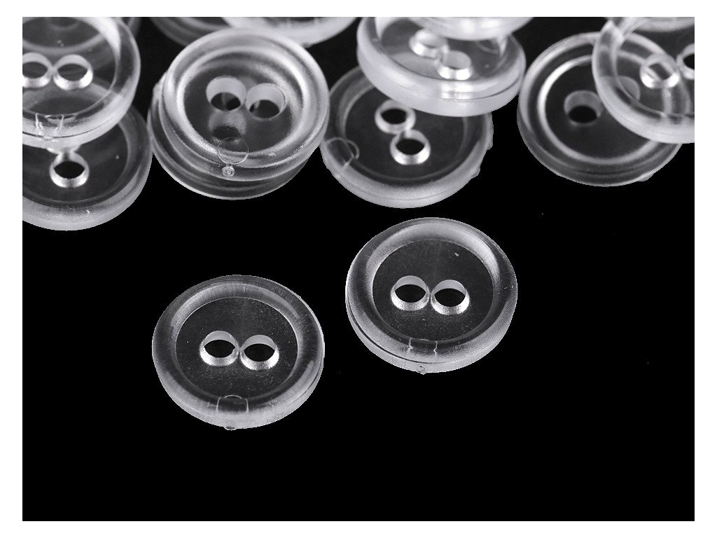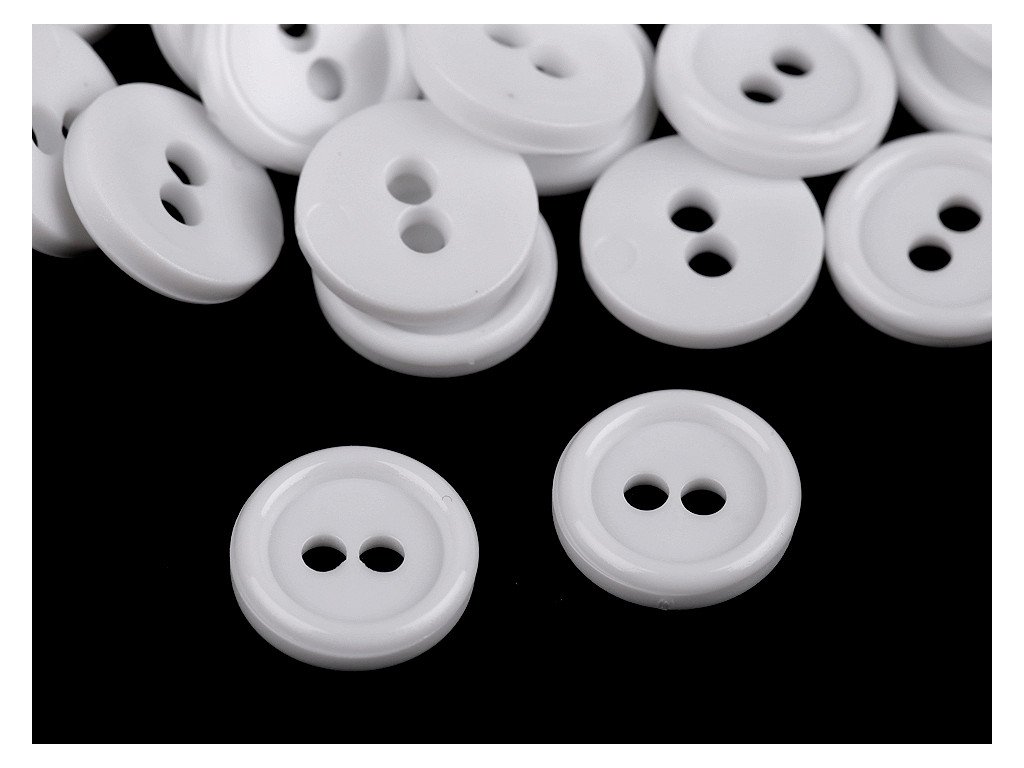 Plastové knoflíky mají kulatý tvar a dvě dírky. Využijete je nejen k našití na košile, ale také k originálnímu tvoření obrazů.