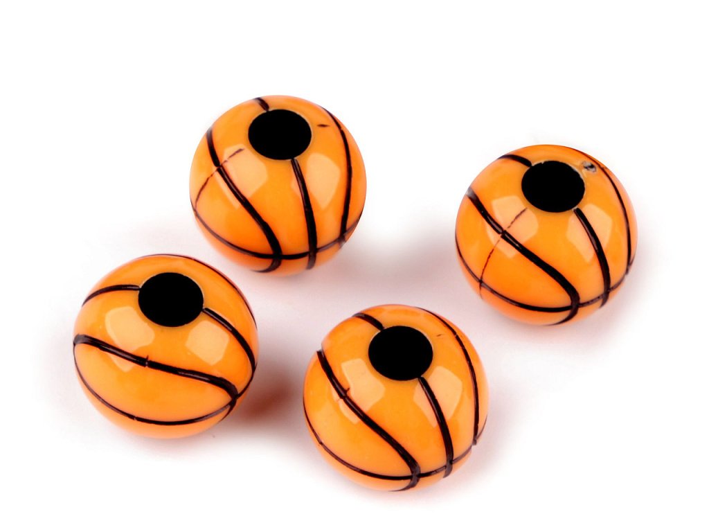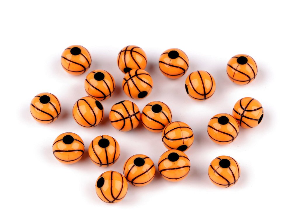 Barevné plastové korálky mají zajímavý design basketbalového míče. Využijete je na výrobu náhrdelníků a náramků. Skvěle se hodí do sportovních témat, proto je můžete použít i při dekorování různých předmětů, jako jsou klíčenky a přívěsky. Jsou ideální pro všechny, kdo mají v oblibě basketbal nebo sportovní styl. Díky většímu průvleku se dobře navlékají.