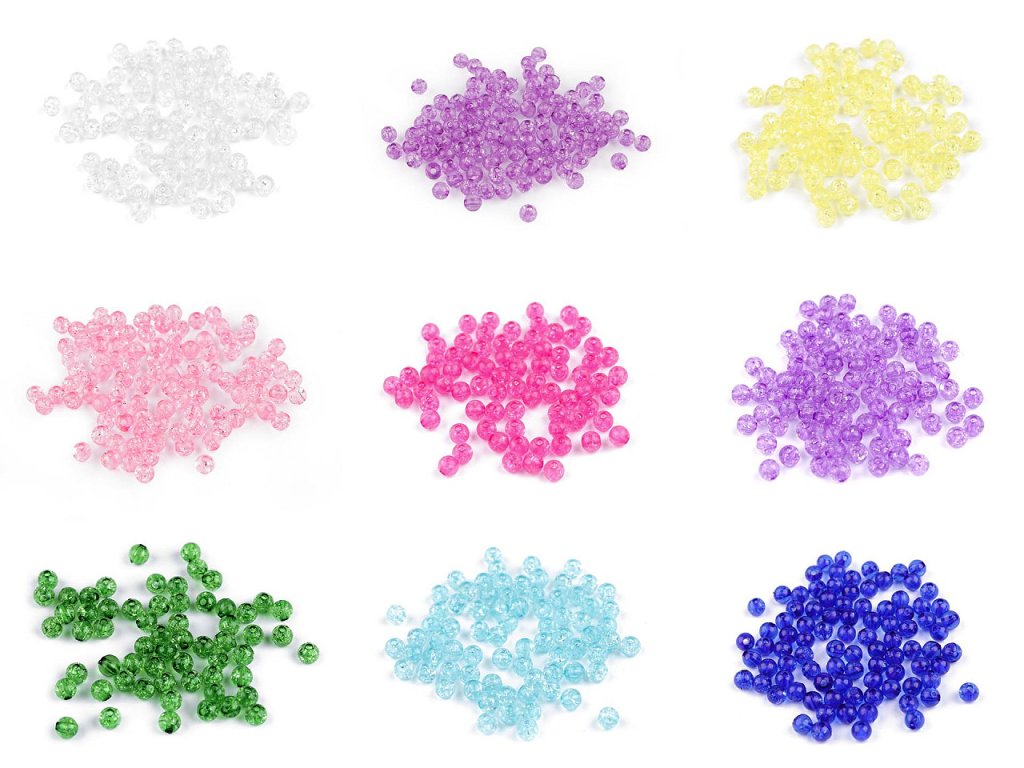 Plastové korálky s efektem kraklé - prasklin lidově nazývaných práskačky, jsou velice variabilní. Mají všechny výhody plastových korálků - jsou lehoučké, mají dostatečně velký průvlek, aby jimi prošly i stužky nebo voskované šňůry. Našim fotografkám se fotografie velmi povedly, ale věřte, že ve skutečnosti jsou korálky ještě zajímavější.