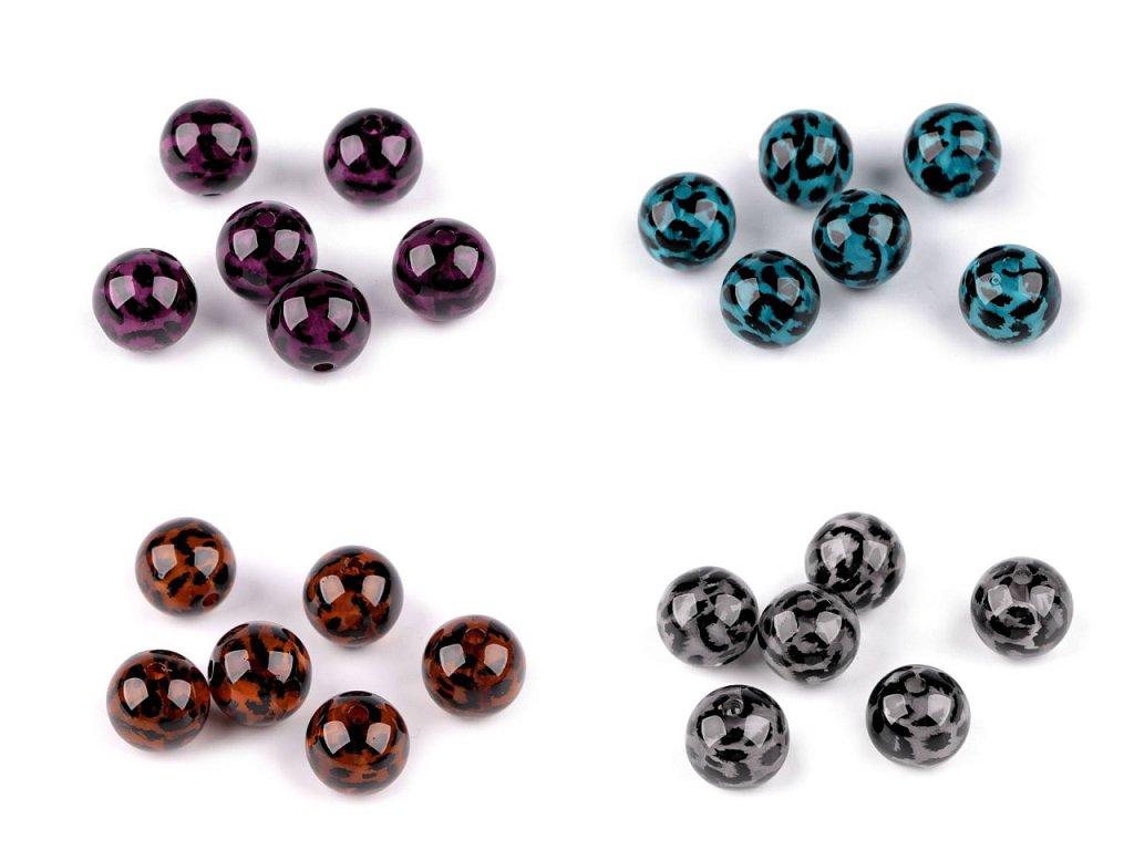 Plastové korálky s leopardím vzorem představují jedinečný designový prvek, který vyniká svou hravostí a netradičním vzhledem. Jsou lesklé, mají zajímavé mnohovrstvé probarvení. Jsou velice kvalitní, všude hladké, nemají žádné otřepení nebo viditelné švy. Můžete je použít k výrobě náramků, náhrdelníků i náušnic, hodí se i jako dekorační prvek do různých přívěsků na kabelky, batohy a klíče, využijete je i k ozdobení klobouků.