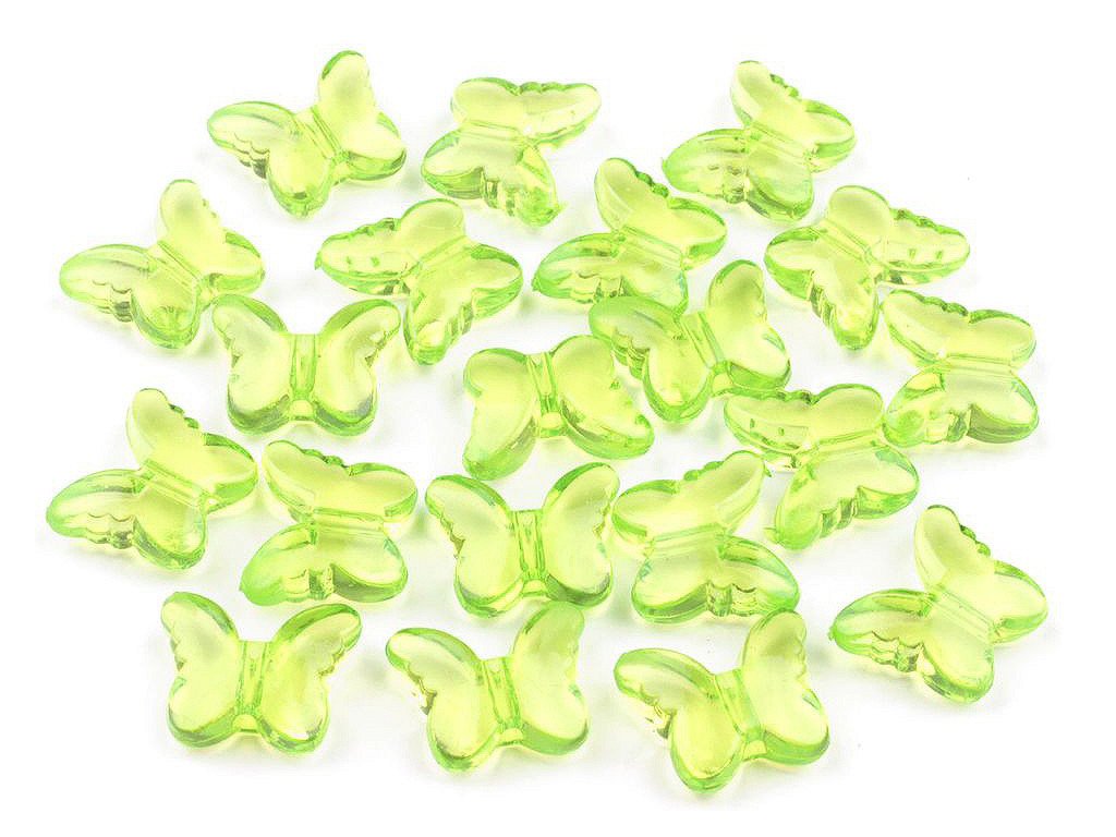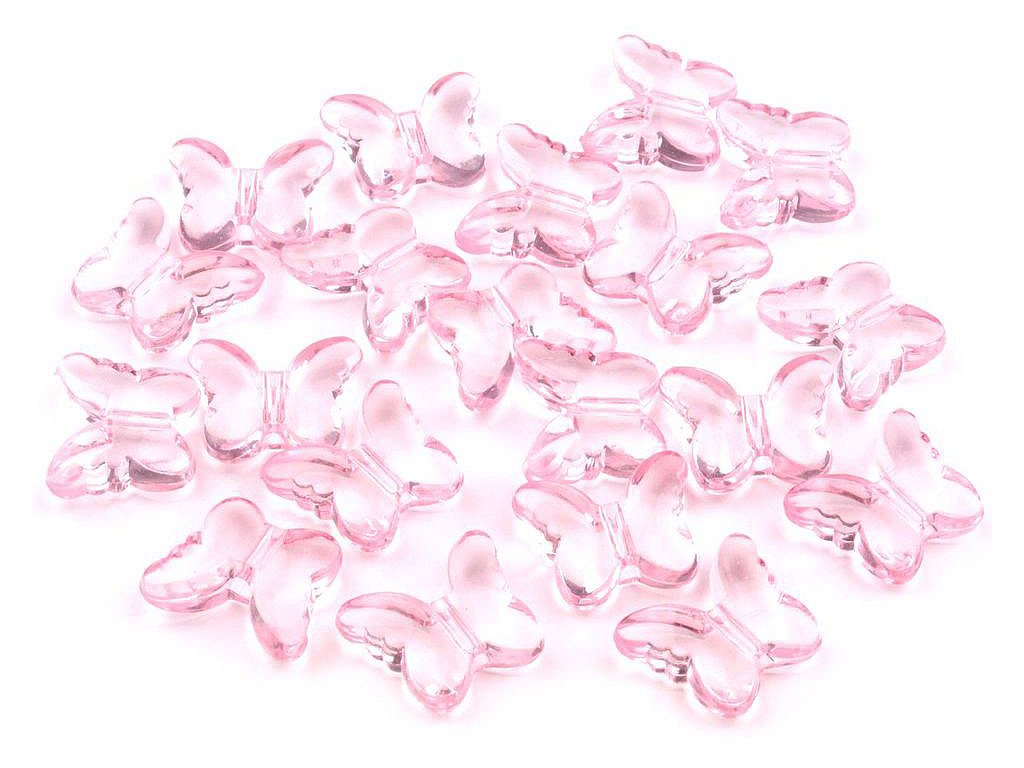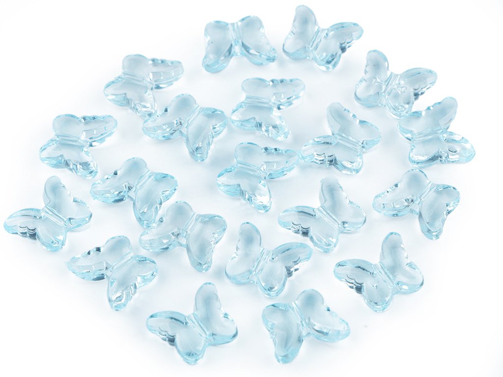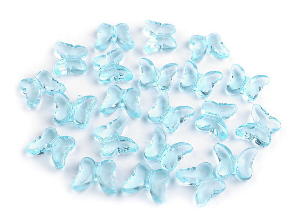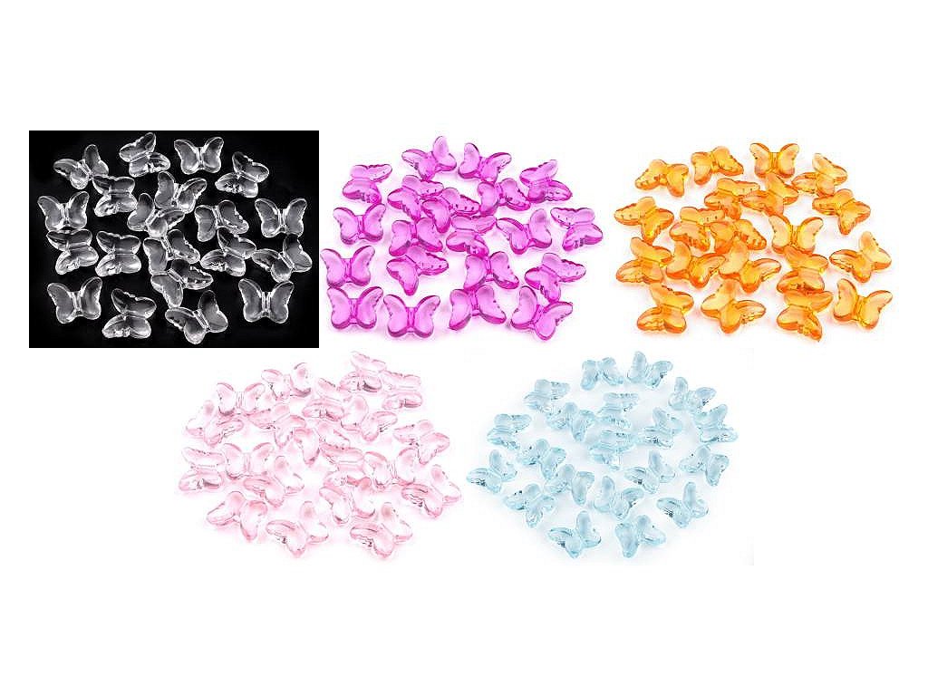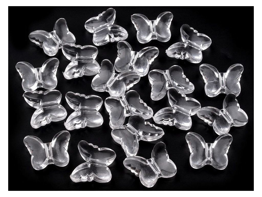 Transparentní plastový korálek ve tvaru motýla je vhodný pro výrobu dekorací a bižuterie.