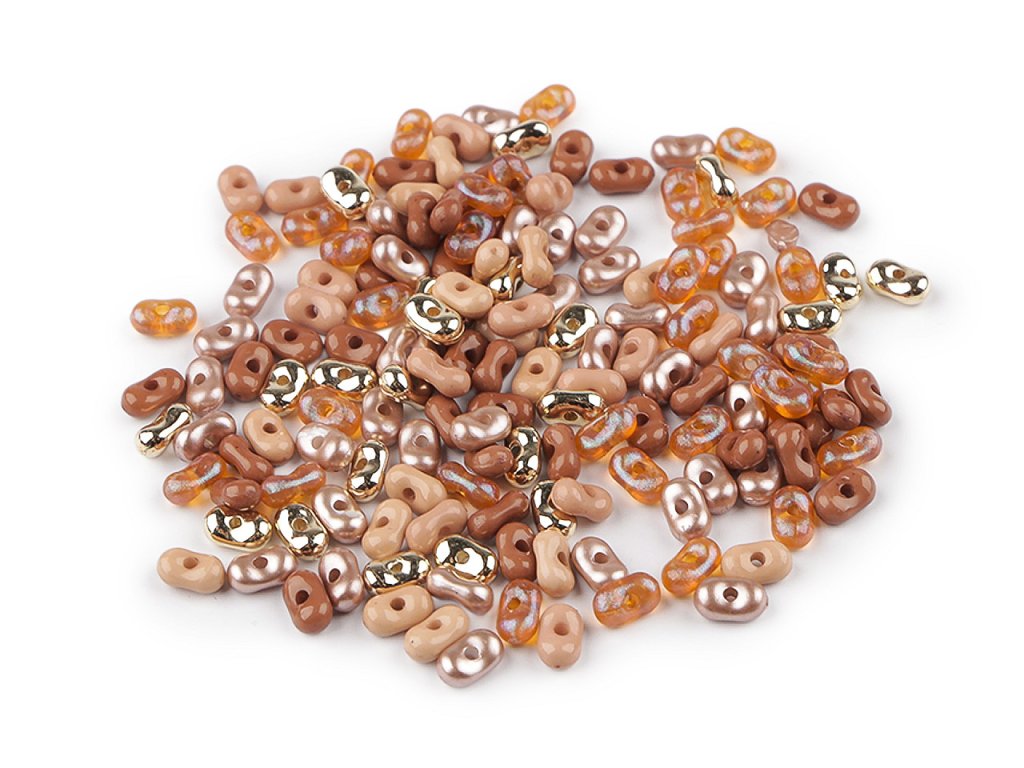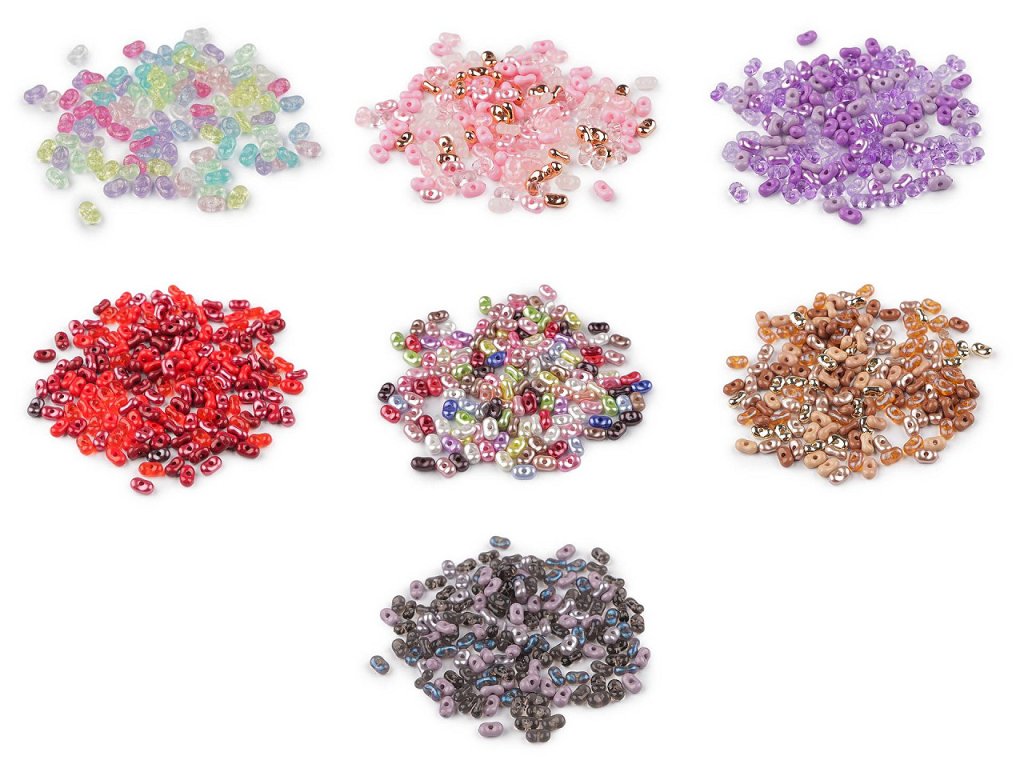 Malé plastové korálky mají zajímavý tvar arašídů. Na obou koncích jsou buclaté, uprostřed zmáčknuté, průvlek mají umístěný uprostřed korálku. Po navlečení vedle sebe vytváří zajímavý 3D efekt. Mají syté barvy, jsou velice kvalitní, všude hladké, nemají žádné otřepení nebo viditelné švy. Využijete je na výrobu bižuterie a zdobení oděvů, tašek či dekorací do bytu.