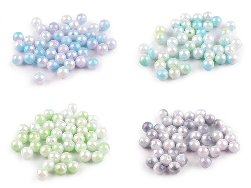 Z plastových korálků s mermaid efektem budou všichni nadšení, připomínají duhové perly. Jsou doslova magické, jejich povrch má vysoký lesk. Našim fotografům se fotografie velmi povedly, ale věřte, že ve skutečnosti jsou korálky ještě zajímavější.