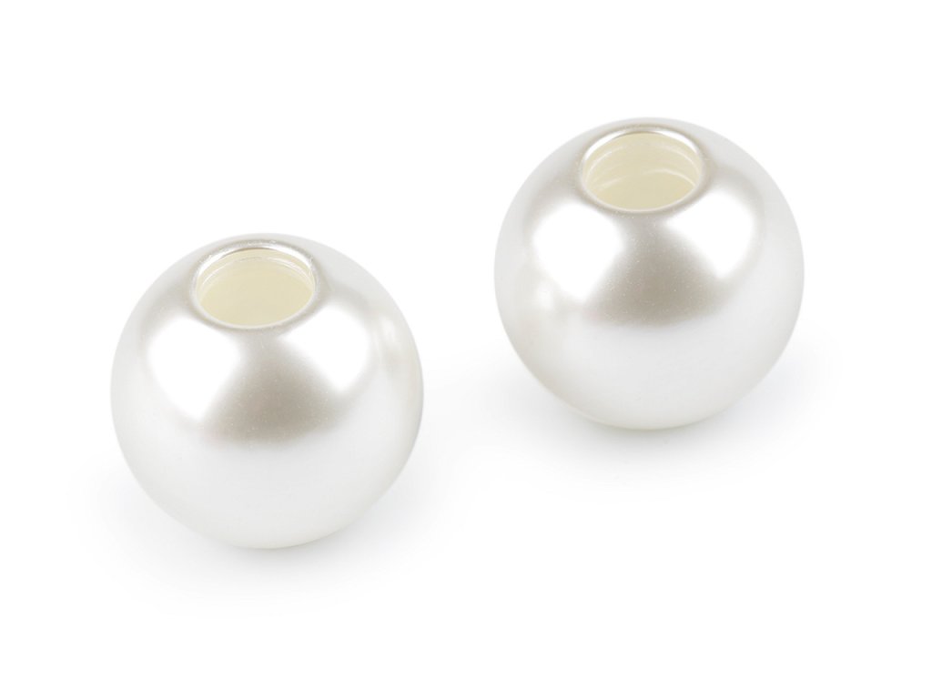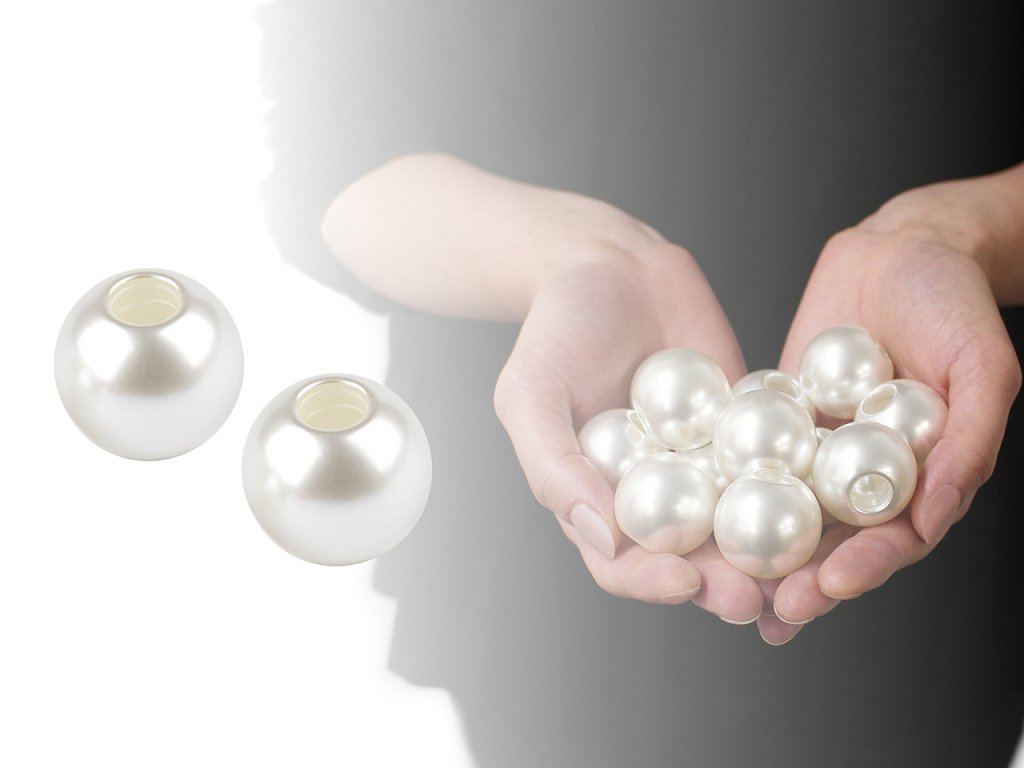 Velké perlové korálky dokáží vyvolat dojem luxusu. Může za to jejich jemný a přitom zářivý lesk. Jejich efektní plastová imitace má stejný lesk na jaký jste zvyklí u skleněných voskovaných perlí. Jejich výhodou je lehká hmotnost, nemusíte se bát použít je do výrazných náhrdelníků. Stačí je jednoduše navléct a doplnit jinými druhy korálků dle vašeho vkusu. Díky velkému průvleku se hodí i na navléknutí na šňůry a provázky, můžete je použít například do lapačů snů, na různé dekorace, k ozdobení uch kabelek, tašek apod. Dají se využít i jako hlavičky na tvorbů postaviček a zvířátek.