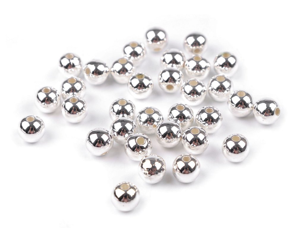 Kulaté plastové korálky mají metalickou, vysoce lesklou úpravu na povrchu.