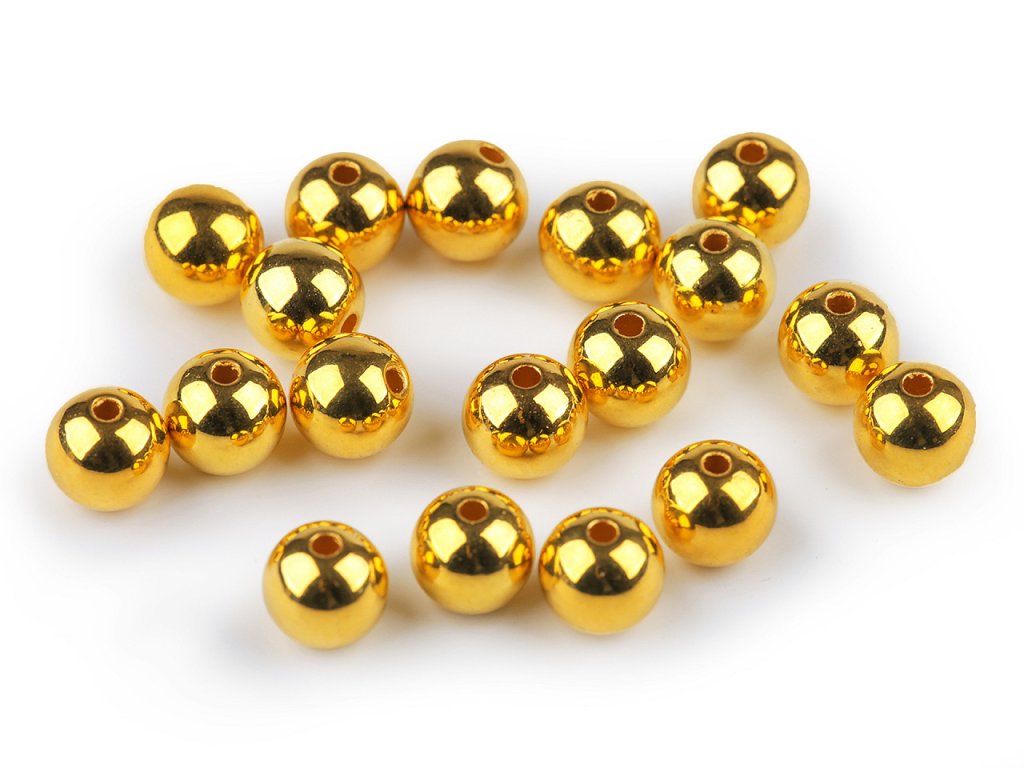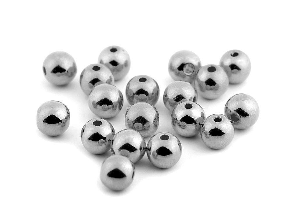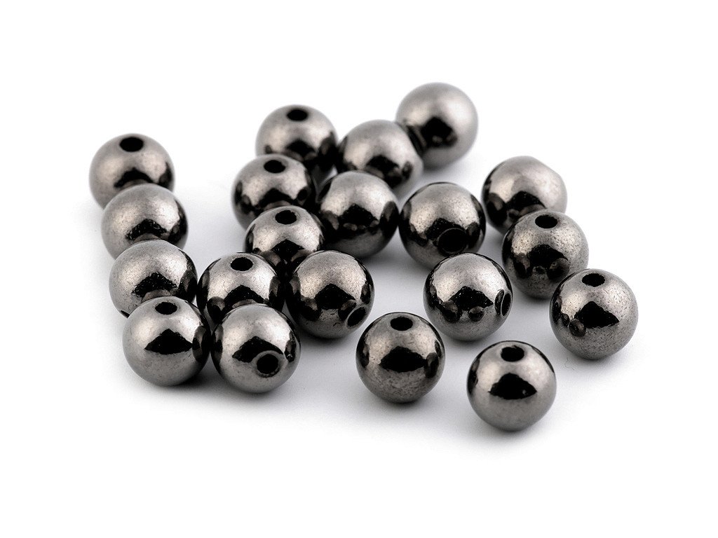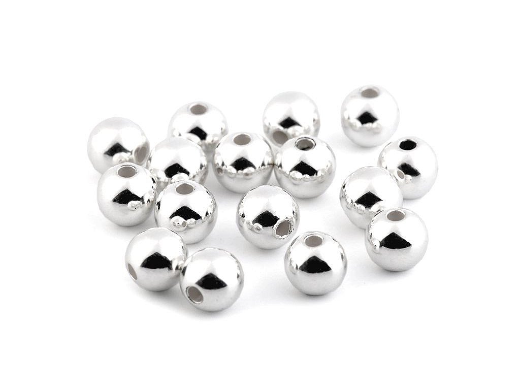 Úchvatné plastové korálky ve tvaru kuličky s metalickou, vysoce lesklou úpravou na povrchu.