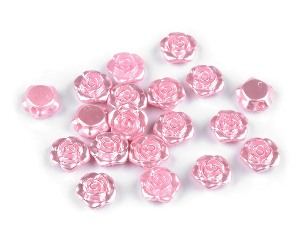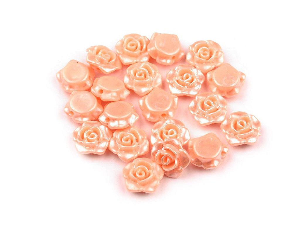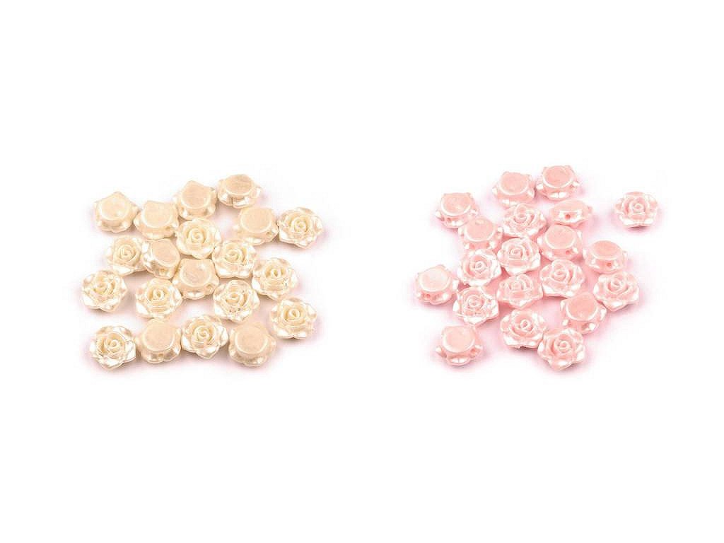 Efektní plastové korálky ve tvaru květu růže mají perleťový lesk a nízkou hmotnost. Snadno si vyrobíte romantické a elegantní šperky. Květ je plasticky tvarovaný.