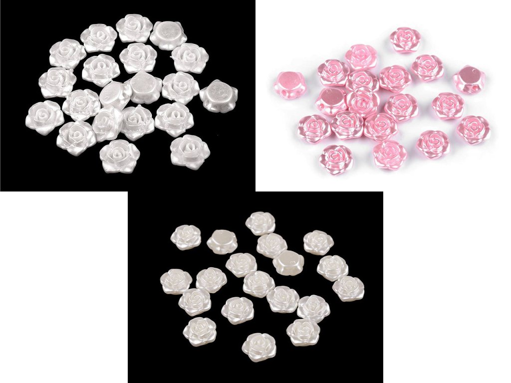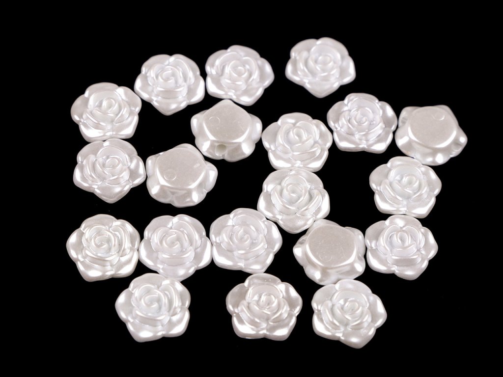 Plastové voskové korálky / perly růžičky s průvlekem Ø13 mm