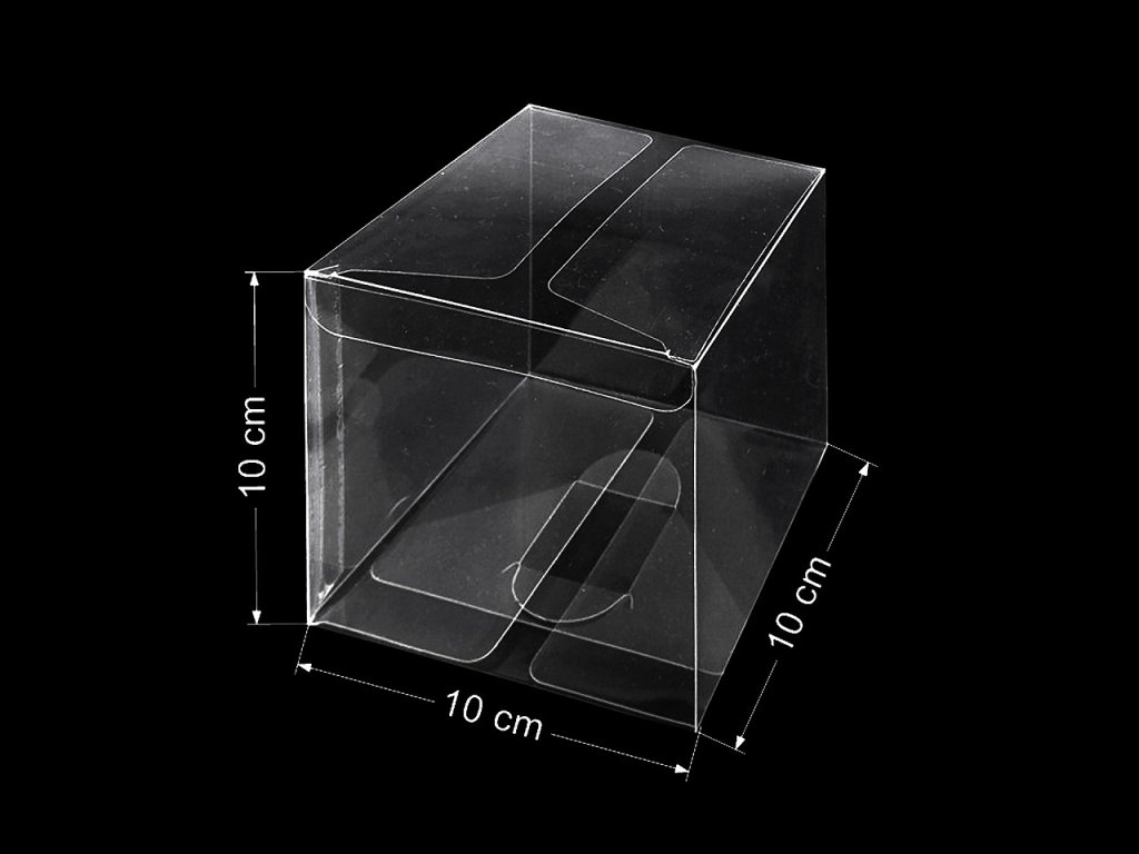 Plastovou průhlednou krabičku ve tvaru krychle využijete k dárkovému balení předmětů. Můžete ji využít např. na zabalení broží či ozdob do vlasů. Hodí se i na drobné dekorace např. malá velikonoční vajíčka, rolničky, dřevěné dekorační ozdoby apod.Krabičku dodáváme v rozloženém stavu.