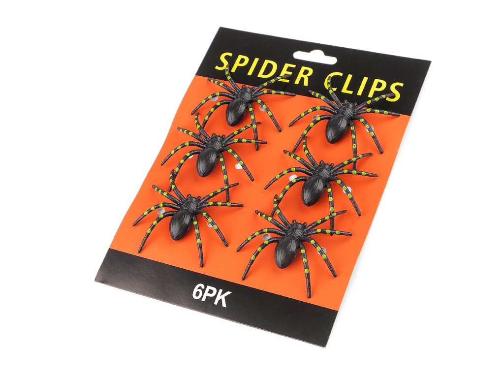 Balení obsahuje 6 ks pavouků, kteří jsou připevnění drátky k papírové kartě.