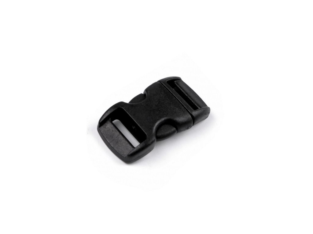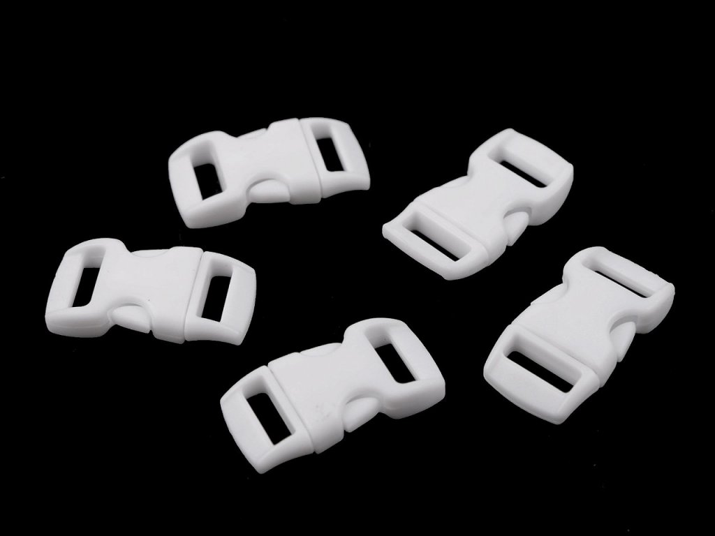 Plastová spona neboli trojzubec má mírně prohnutý tvar. Skvěle poslouží na výrobu outdoorových náramků spletených ze šňůr nebo ozdobných náramků ze stuh. Je vhodná také k výrobě ledvinkových opasků, batohů, kabelek apod.
