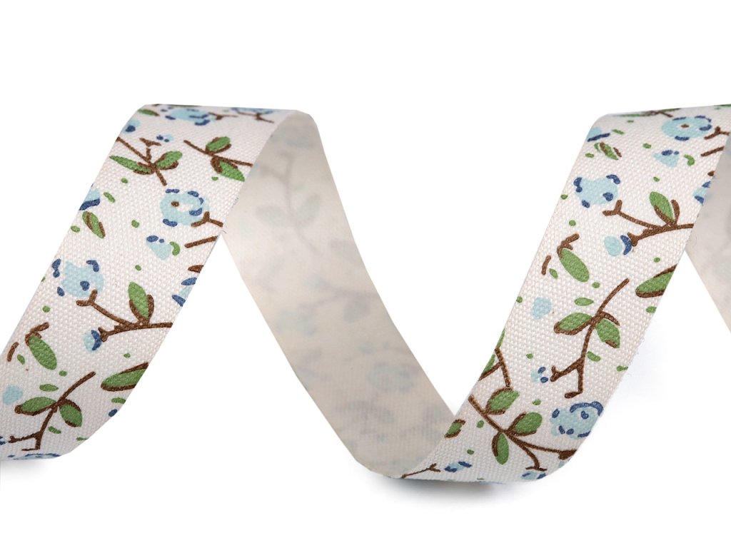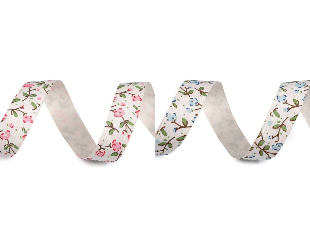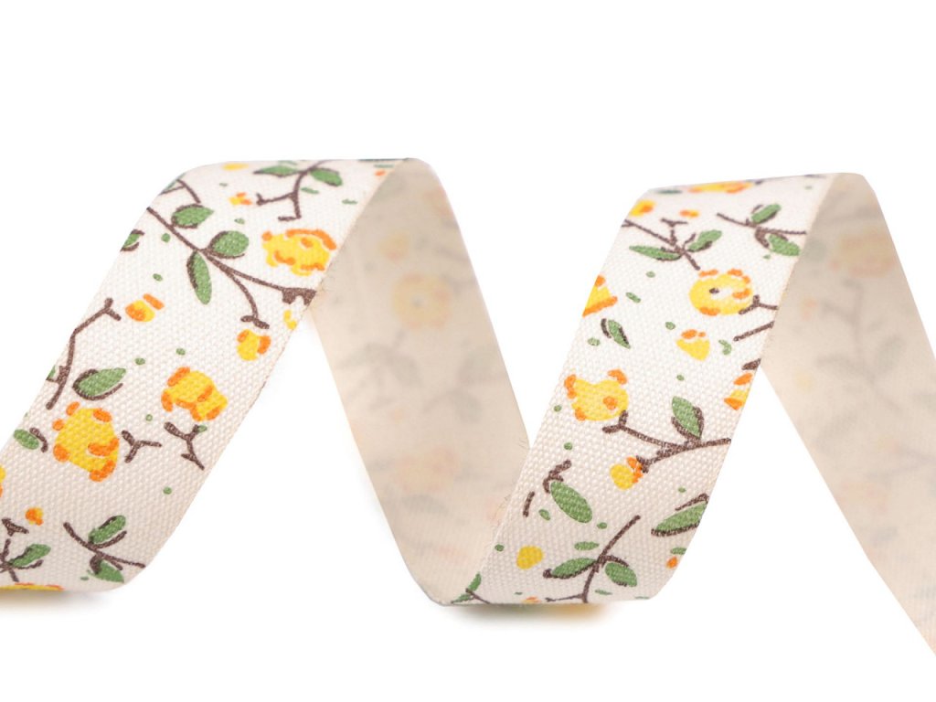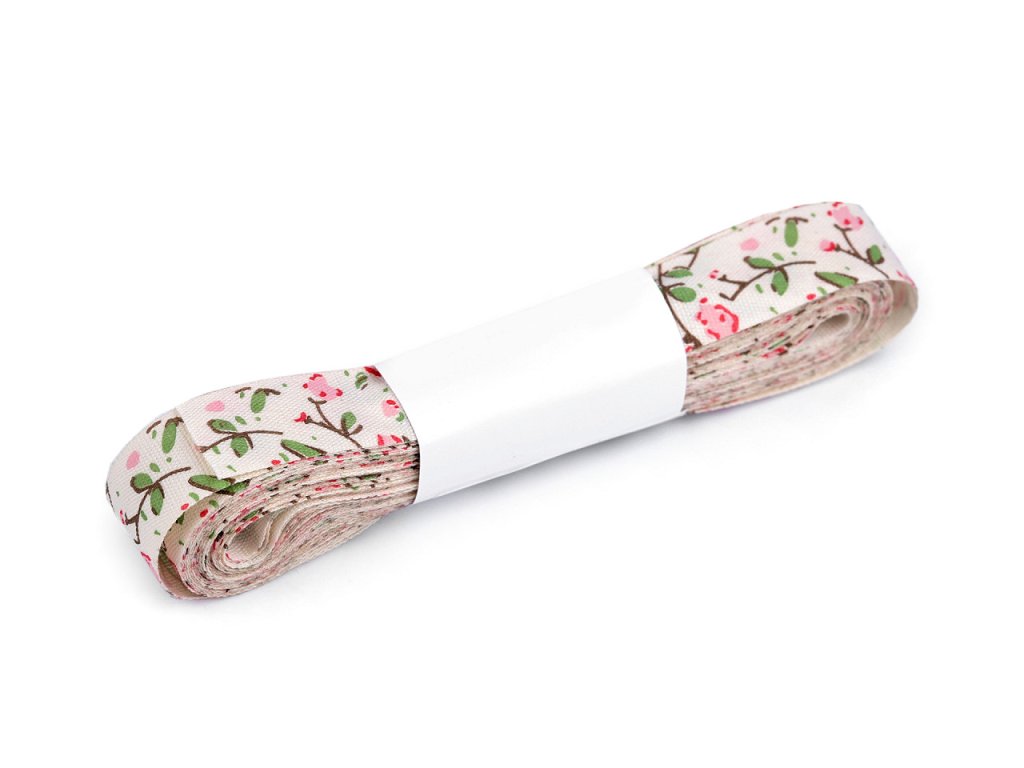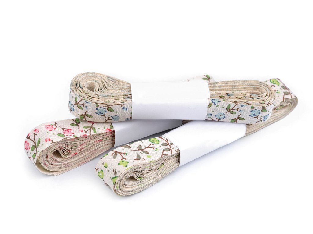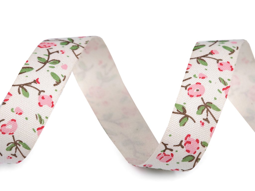 Stuha s potiskem drobných květů je vyrobená ze 100% bavlny. Je jednostranná.