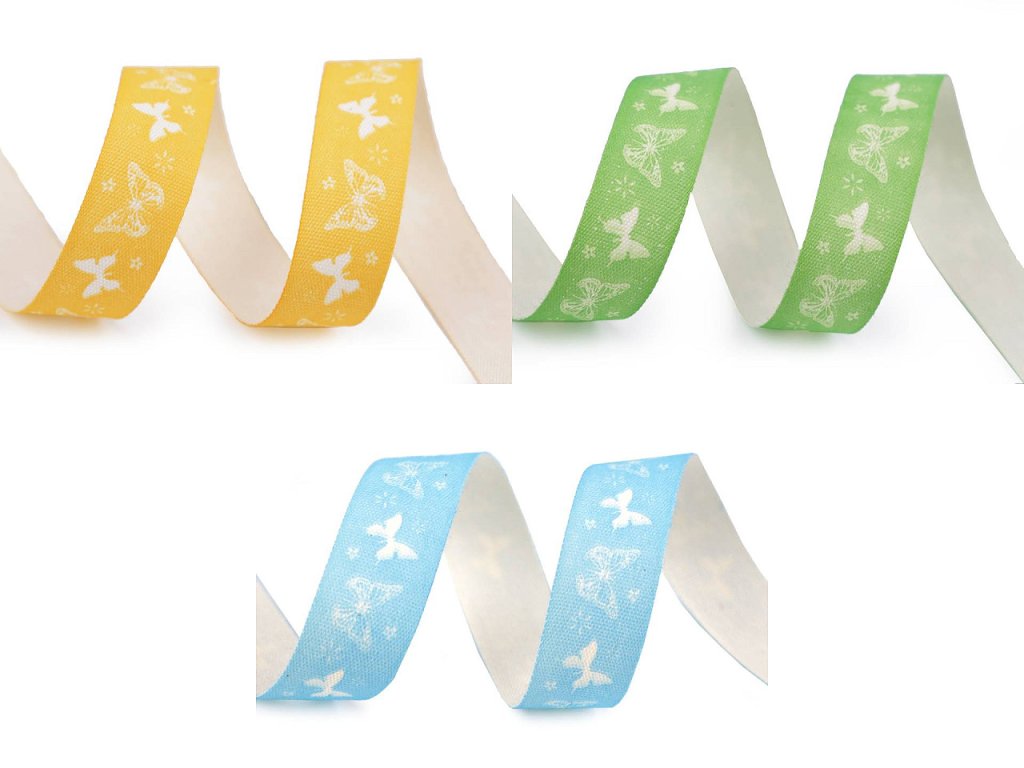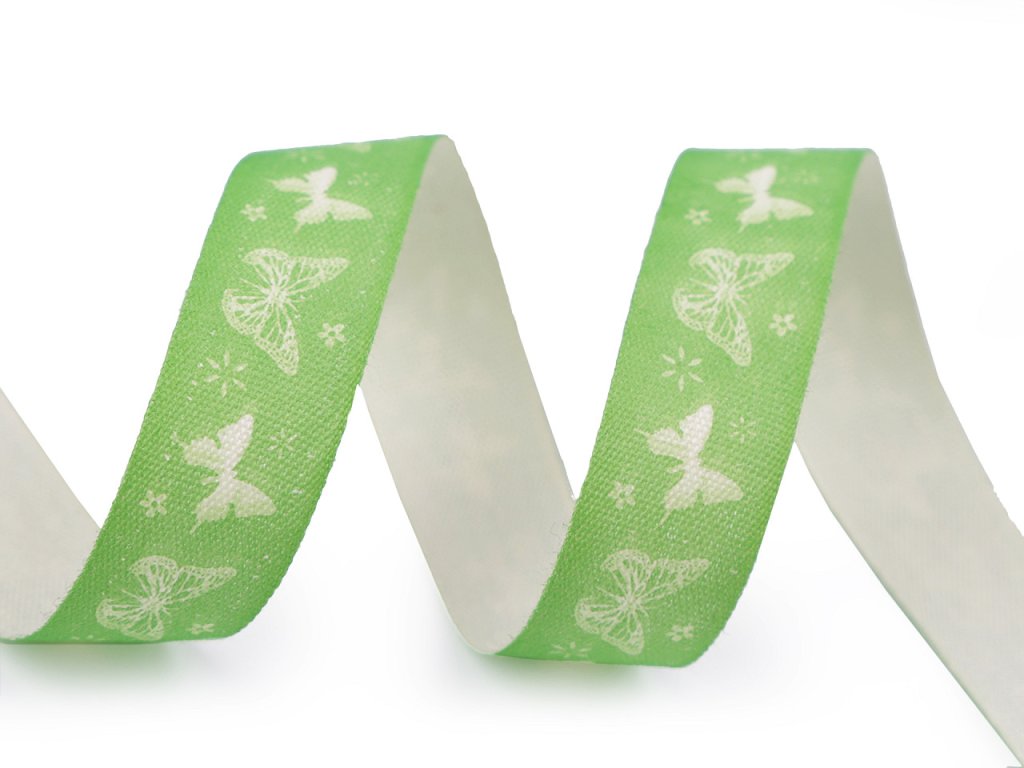 Stuha s potiskem motýlů je vyrobená ze 100% bavlny. Je jednostranná.