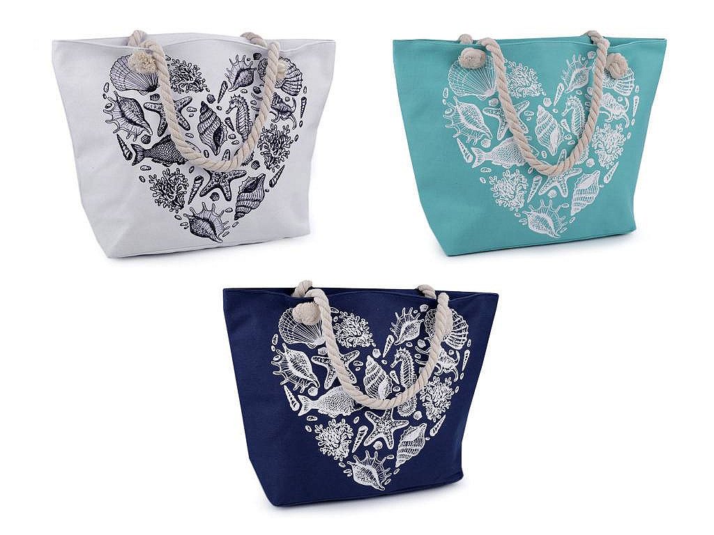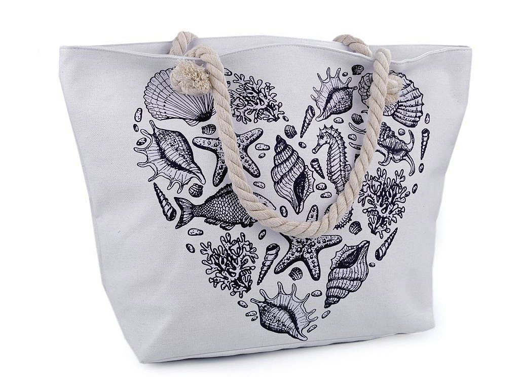Velkou bavlněnou tašku s potiskem srdce z mořských motivů využijete při cestě na koupaliště i na pláž.