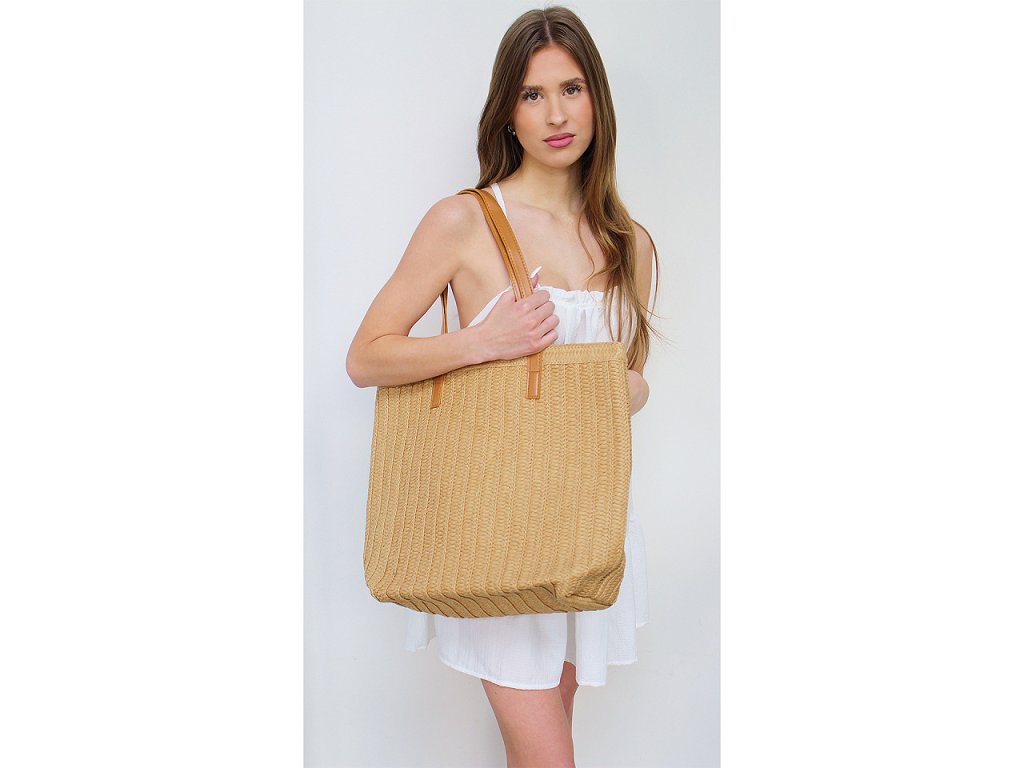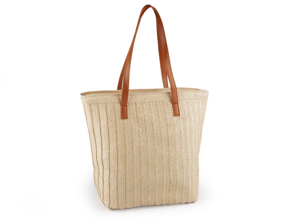 Stylová plážová taška vás nadchne svým velkým prostorem. Vynosíte ji k vodě, na pláž, ale klidně i do města, na nákup a pro další volnočasové aktivity. Zapíná se na zip, uvnitř má podšívku s malými kapsami na drobnosti. Dno je rozšířené, ucha z eko kůže se dají nosit v ruce i na rameni.