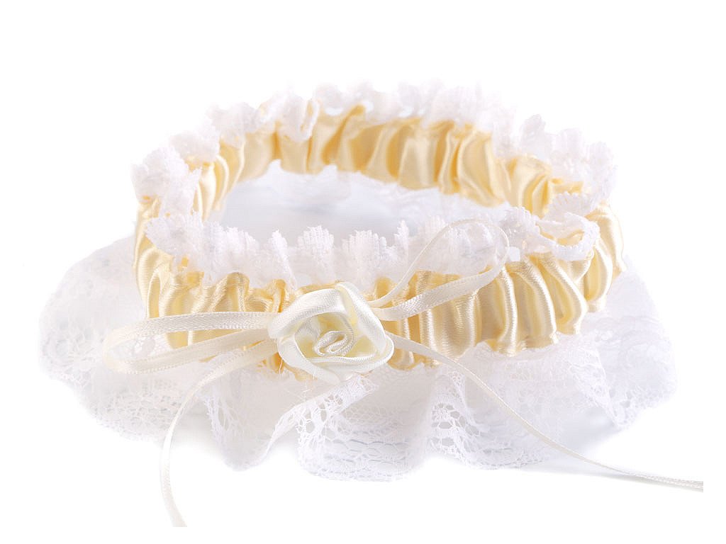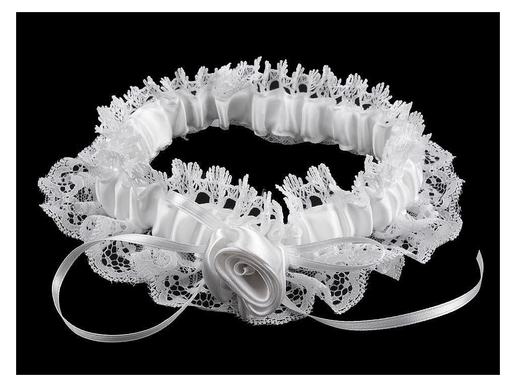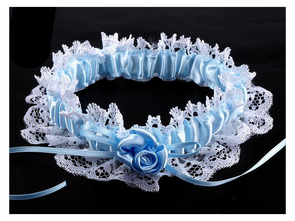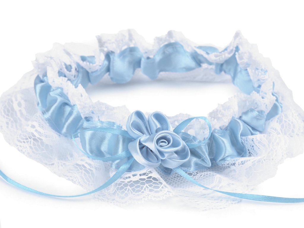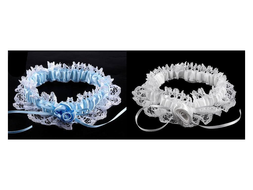 Podvazek Ø 11 cm, obvod volně položený 34 cm, výška v rozmezí od 60 – 80 mm. Dá se natáhnout na obvod stehna do 54 cm. Ve svatební den má mít nevěsta na sobě něco starého, něco nového, něco půjčeného a něco modrého. Stará věc jí má připomínat, s čím se loučí. Nová věc je symbolem nového života a vypůjčená připomíná přátelství, které je třeba dále pěstovat. Nesmí chybět modrý podvazek, protože modrá je barva věrnosti.