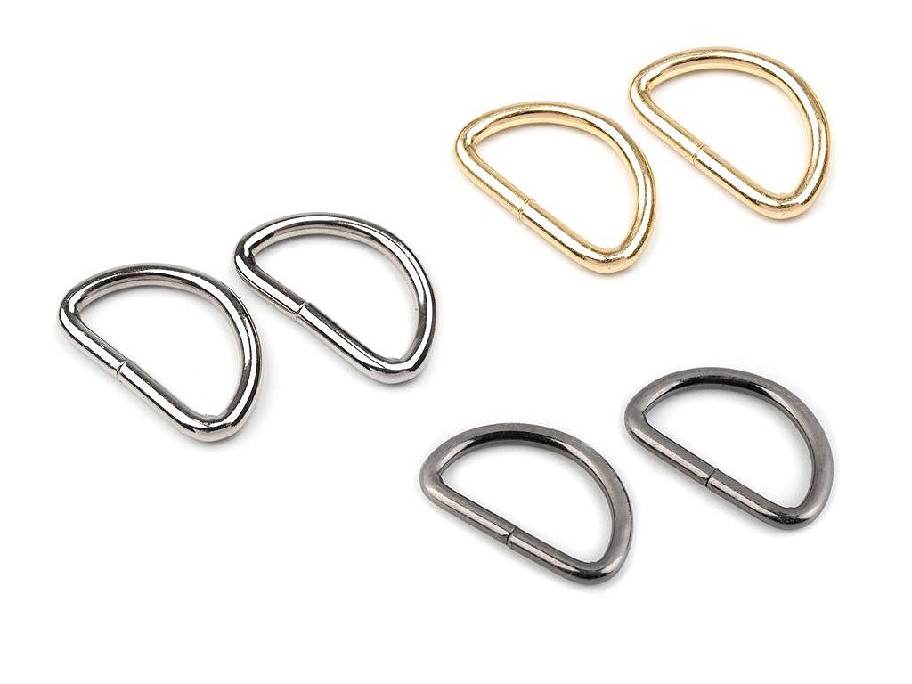 Kovový polokroužek je vhodný k přichycení popruhů či řemenů ke sportovním taškám, batohům, aktovkám nebo kabelkám. V místě spoje není svařený.