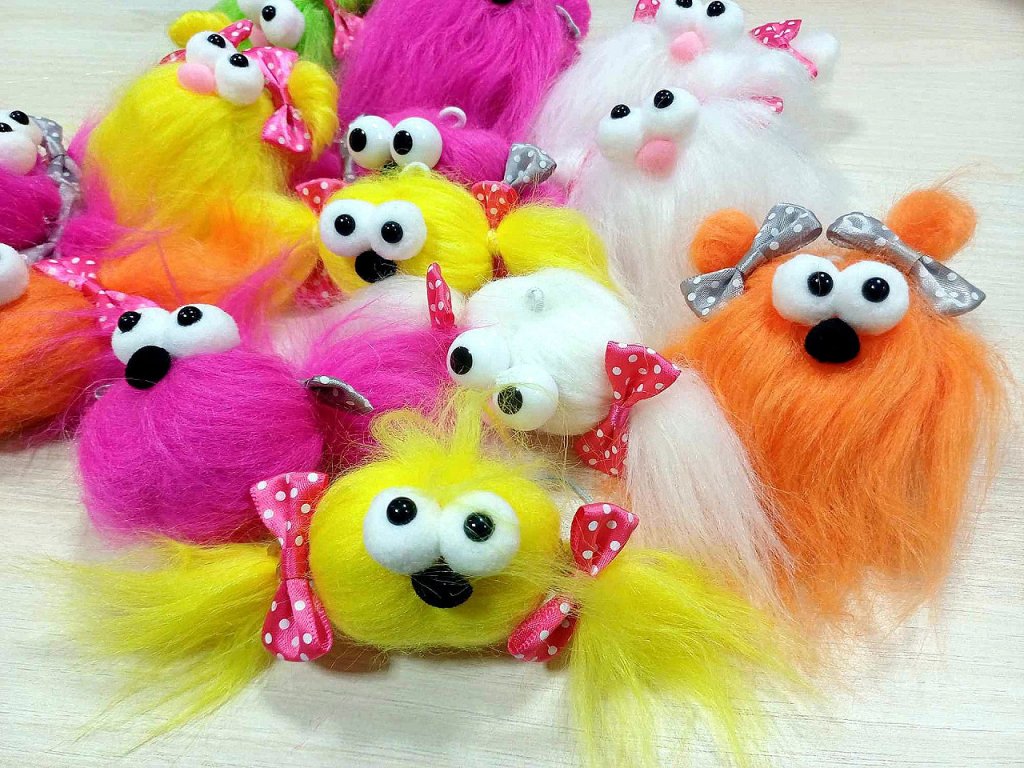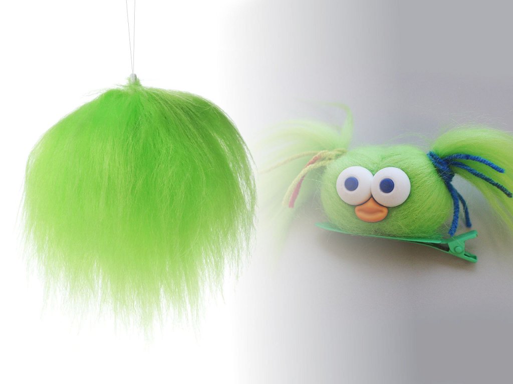 Střapatá kožešinová bambule je nadýchaná a příjemná na dotek. Díky své střapatosti se hodí na výrobu různých skřítků a postaviček. Má malé poutko z pruženky, díky kterému pak můžete vaši postavičku pohodlně připnou ke karabině, třeba jako přívěsek na kabelku, batoh, klíče apod.