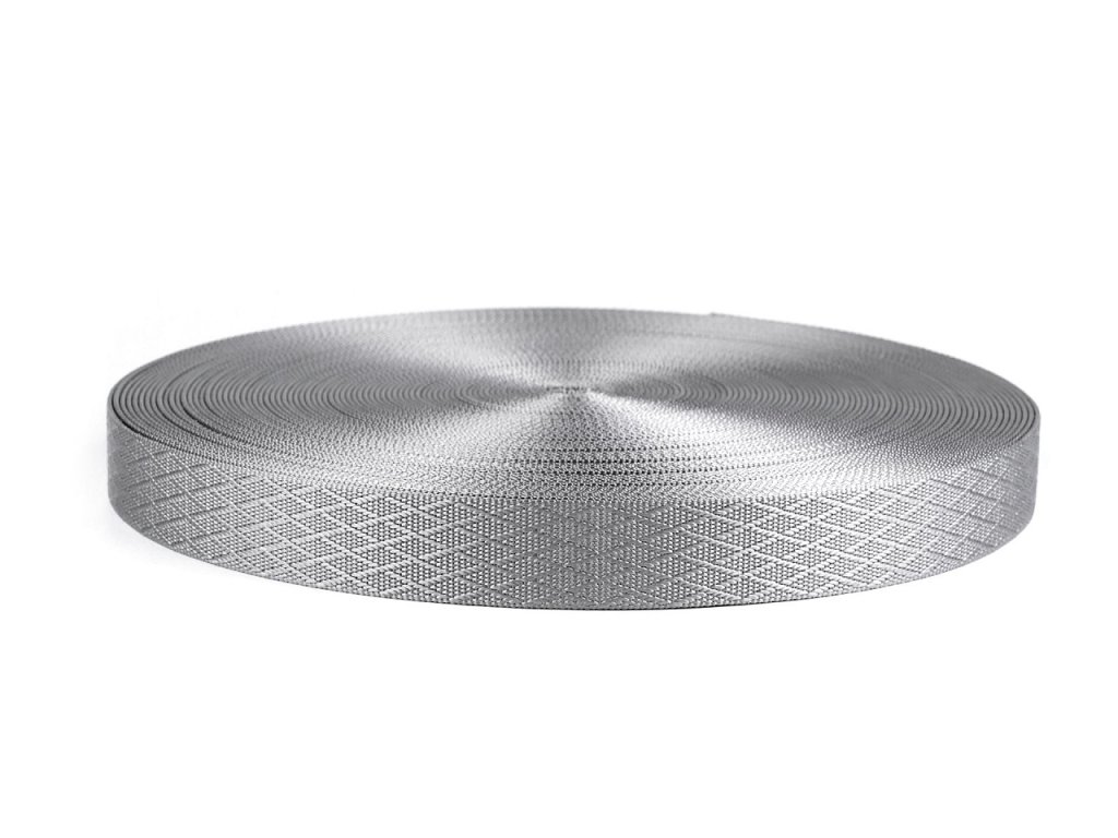 Lesklý oboustranný popruh vyniká zajímavým designem a vysokou pevností. Je tužší. Využijete ho na výplety nábytku, saní, jako ucho na tašky, batohy apod.