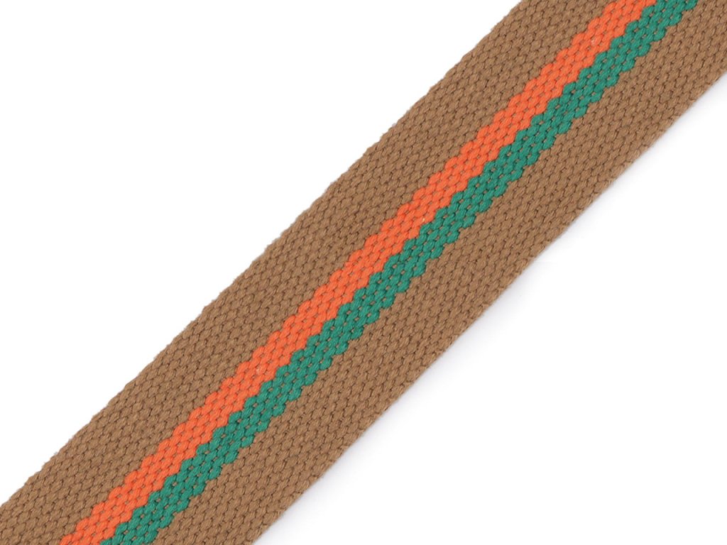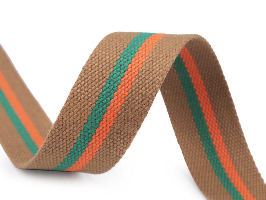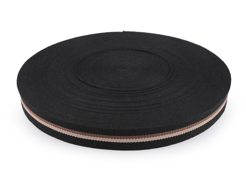 Pevný oboustranný textilní popruh využijete jako ucho na batohy, tašky či kabelky. Je vhodný i na výplety nábytku, lehátek, saní, lemování textilních výrobků apod.