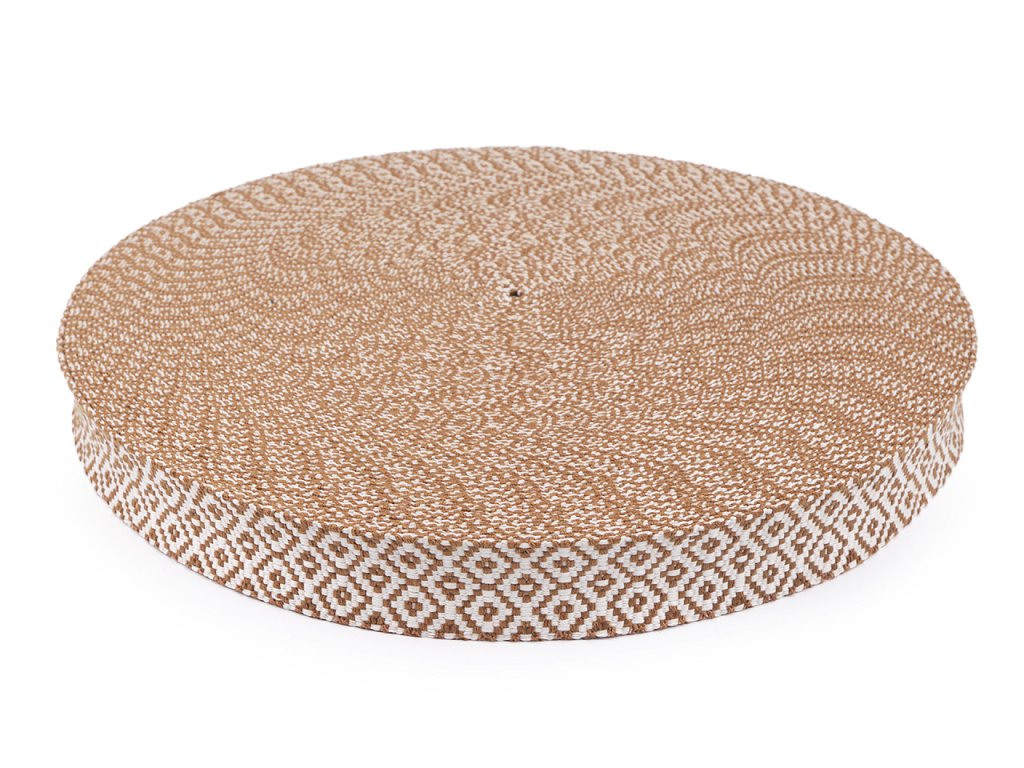 Textilní popruh je pevný, oboustranný a využijete ho jako ucho na batohy, tašky i kabelky. Je vhodný také na výplety nábytku, lehátek, saní, lemování textilních výrobků apod.