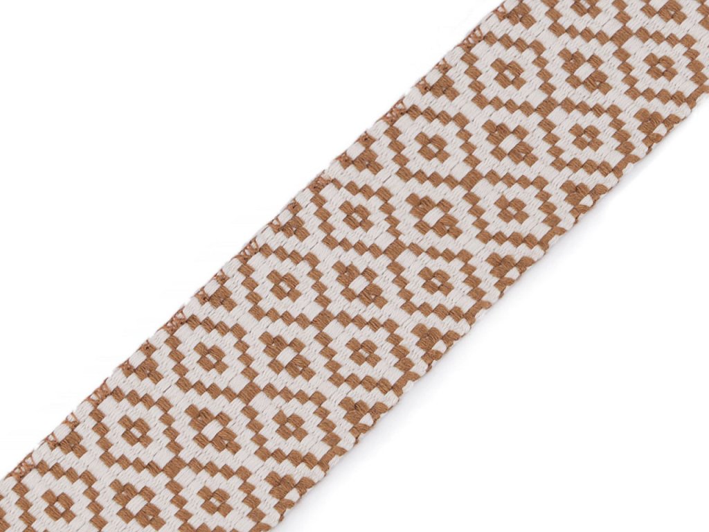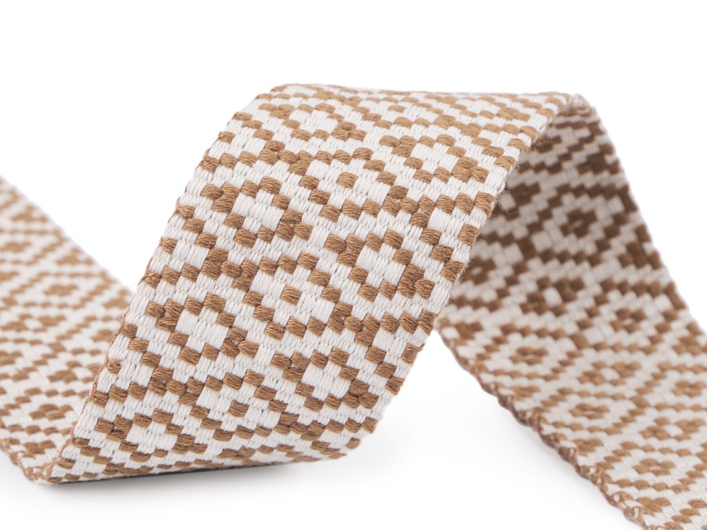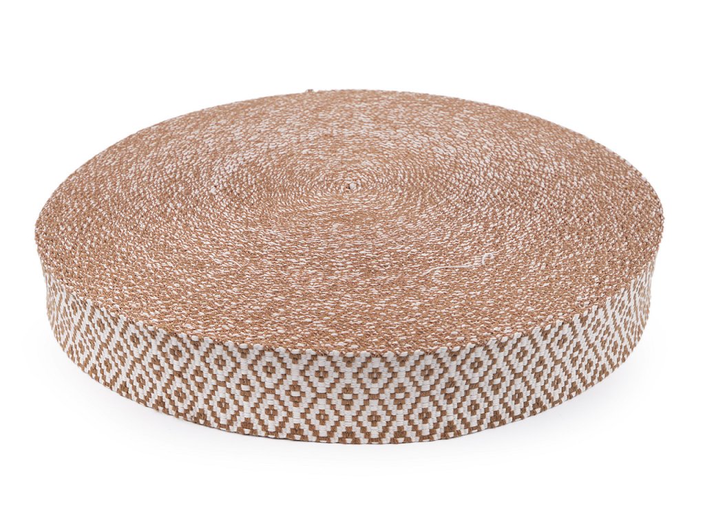 Pevný textilní popruh využijete jako ucho na batohy, tašky i kabelky. Je vhodný také na výplety nábytku, lehátek, saní, lemování textilních výrobků apod. Má oboustranný design.