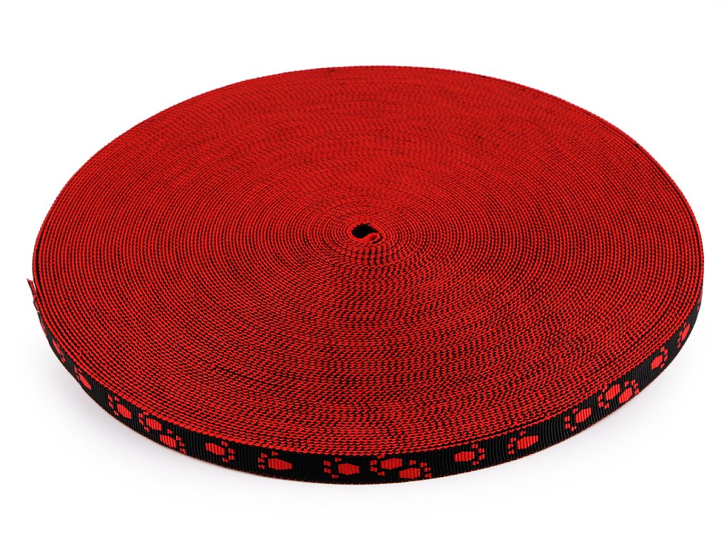 Pevný popruh s motivy tlapek je jako stvořený na výrobu obojků, postrojů a vodítek. Můžete ho ale také využít na batohy nebo tašky. Design s tlapkami je oboustranný.