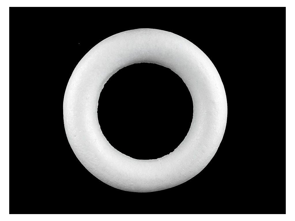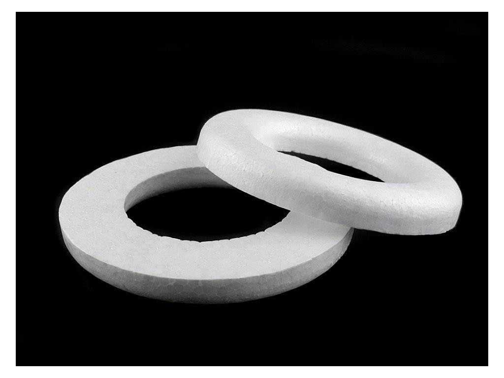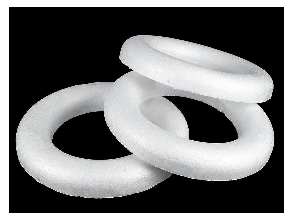 Seříznutý polystyrenový věnec využijete k aranžování. Můžete ho ozdobit stuhami nebo umělými rostlinami a plody a vytvořit si originální podzimní, vánoční či velikonoční dekorace.