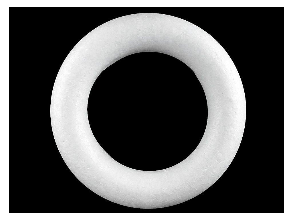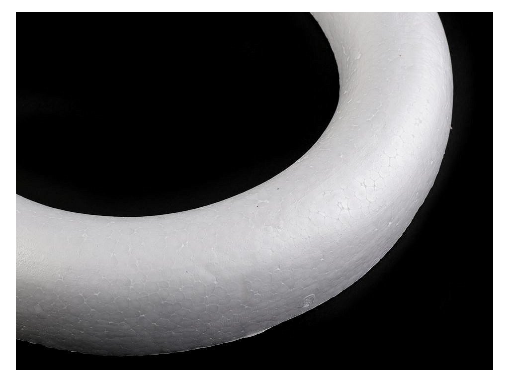 Seříznutý polystyrenový věnec využijete k aranžování. Můžete ho ozdobit stuhami nebo umělými rostlinami a plody a vytvořit si originální podzimní, vánoční či velikonoční dekorace.