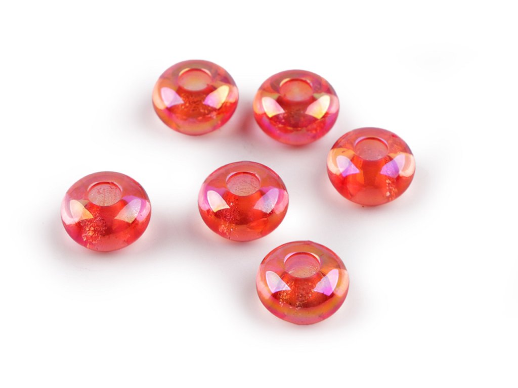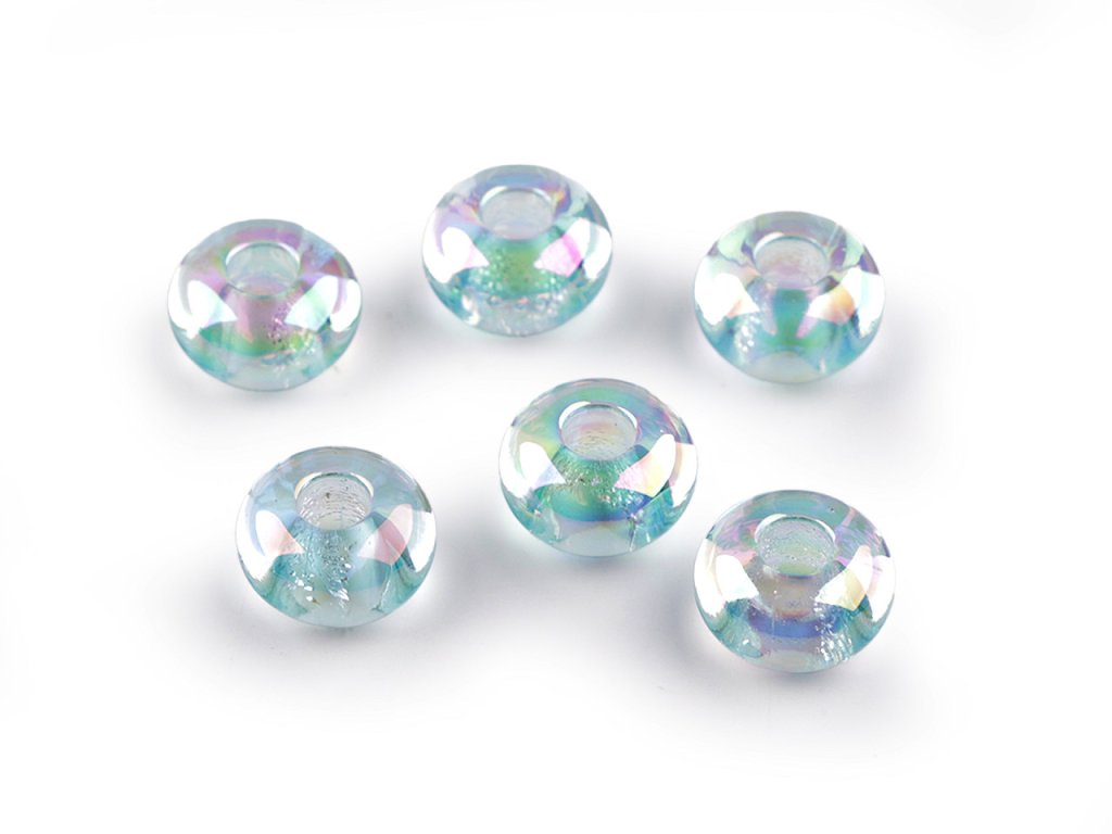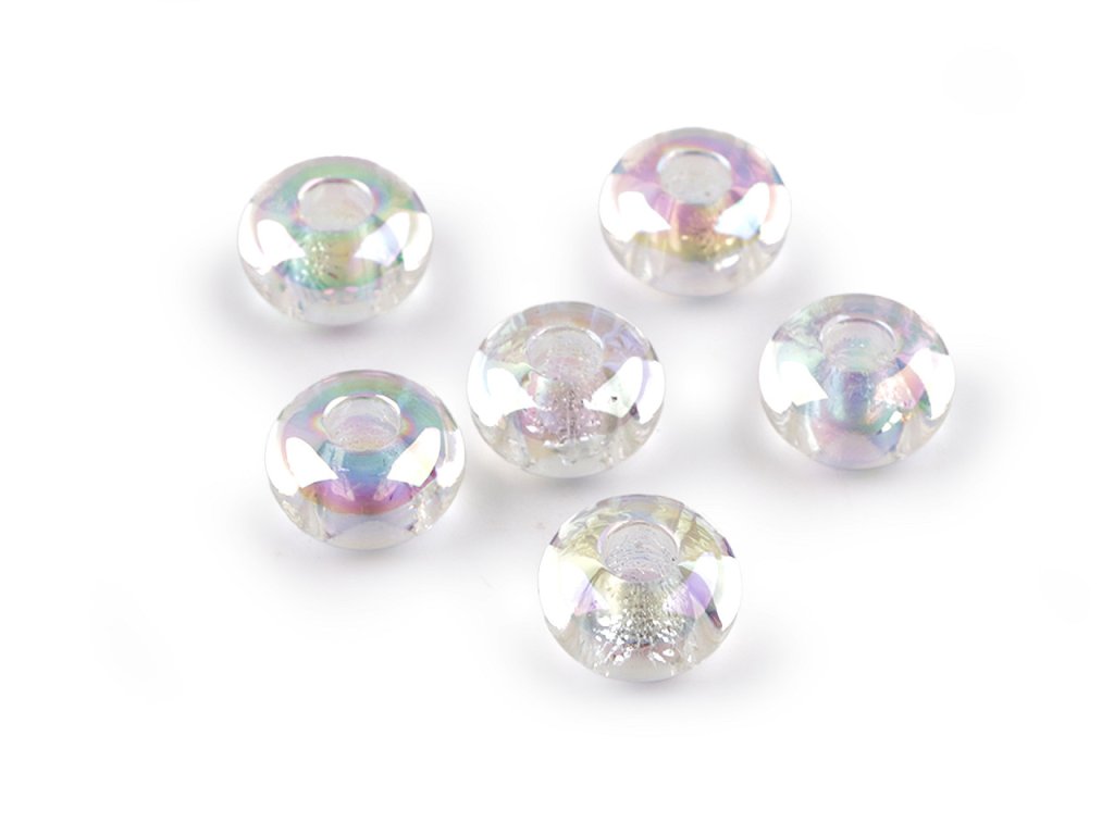Plastové korálky s velkým průvlekem Ø13 mm s AB efektem