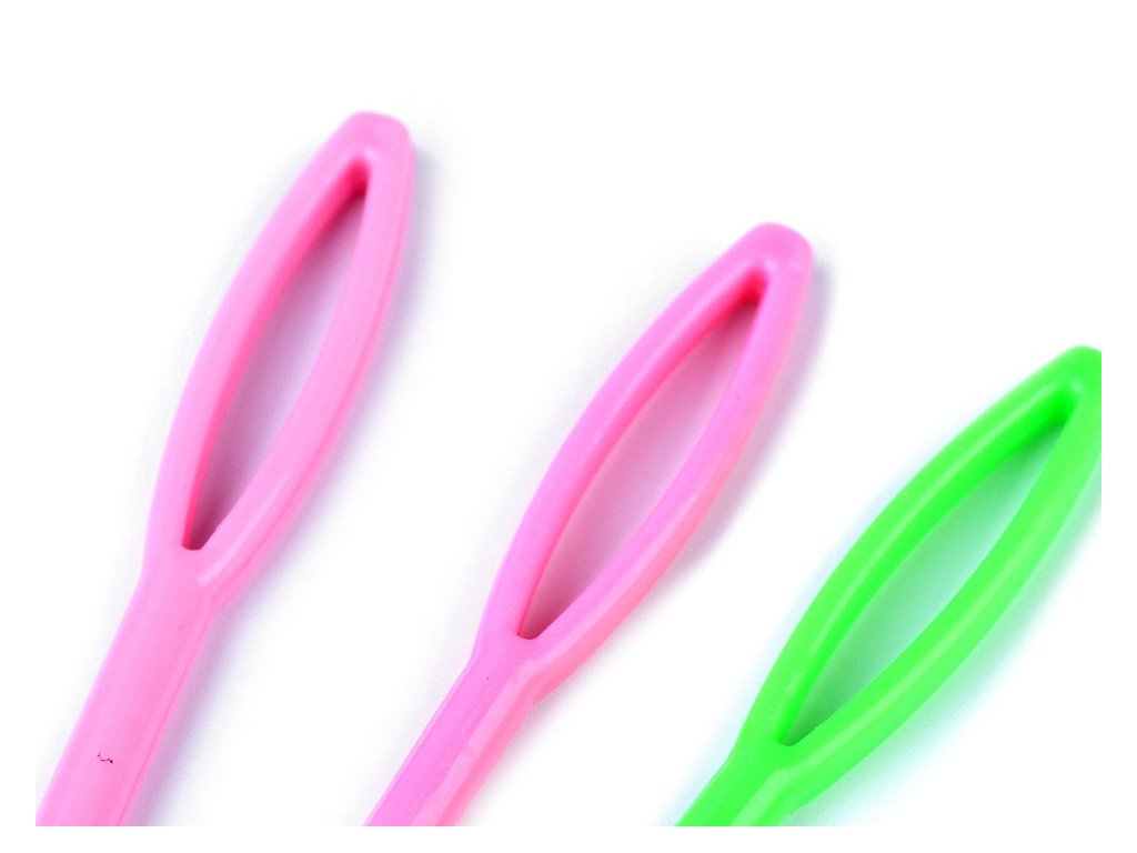 Plastové vyšívací jehly jsou díky velkému očku a tupé špičce vhodné pro dětské vyšívání.