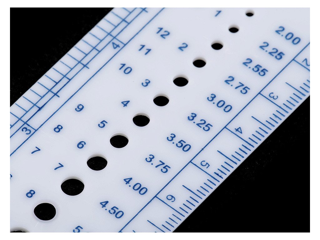 Máte spoustu jehlic a už se v jejich velikostech nevyznáte? S šikovným pravítkem zjistíte tu správnou velikost raz dva.