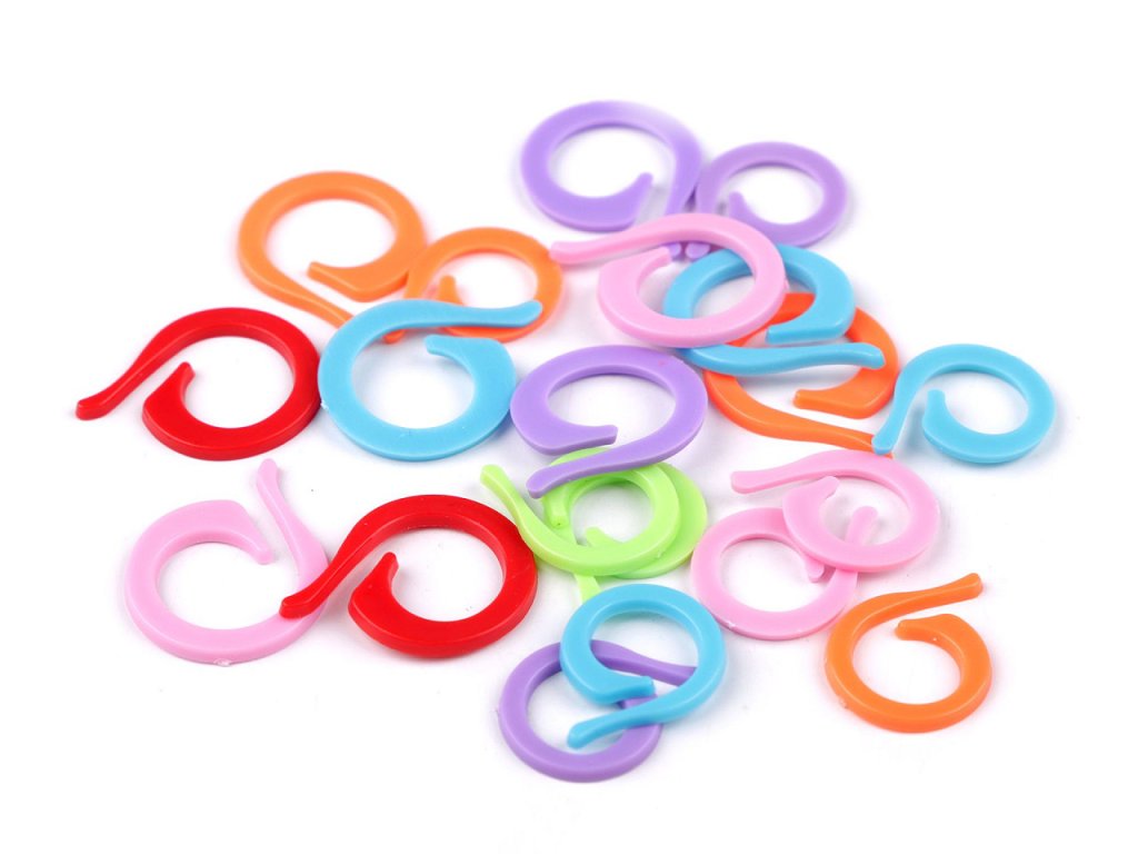 Barevné spínací kroužky vám pomohou při označování řad u pletení složitějších vzorů nebo k označení místa pro kapsu. Snadno se navlékají a sundávají.