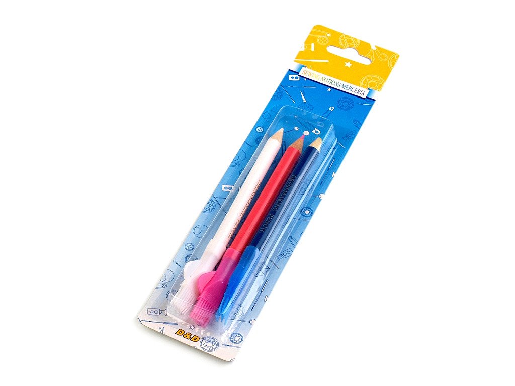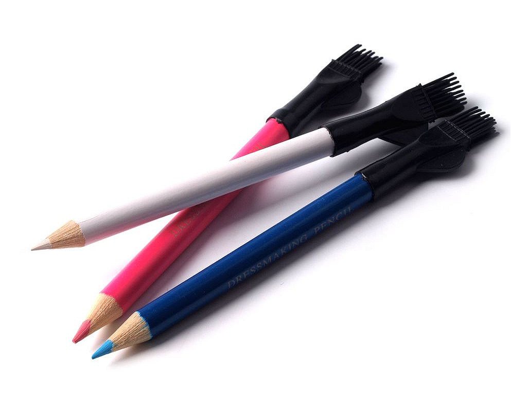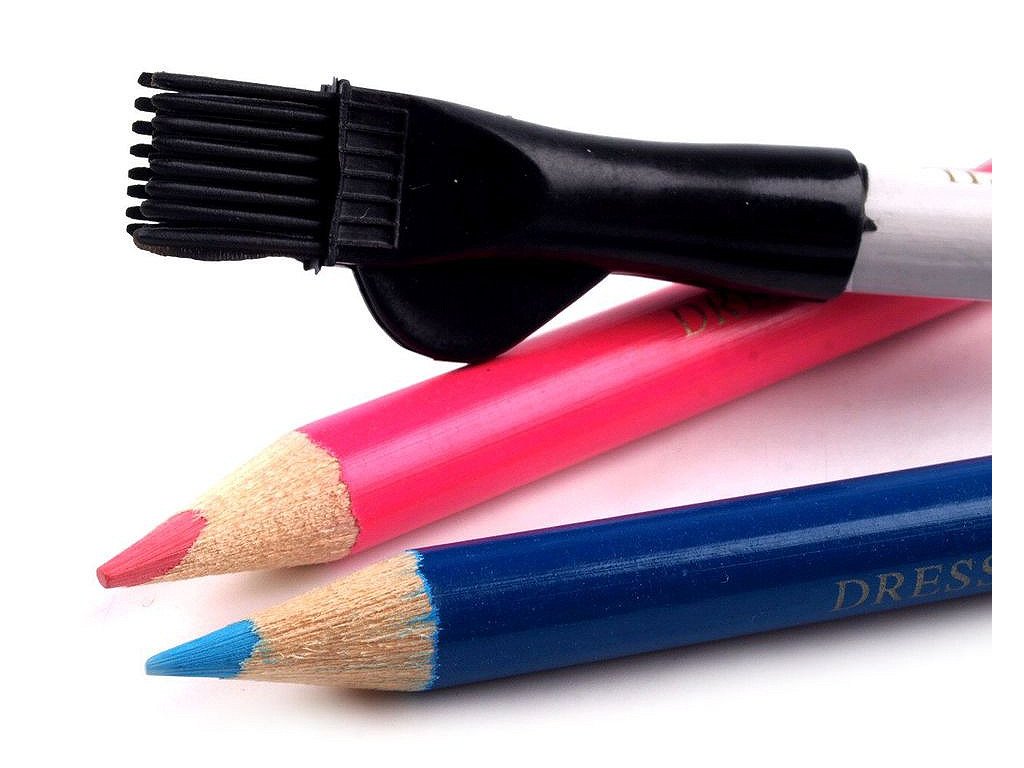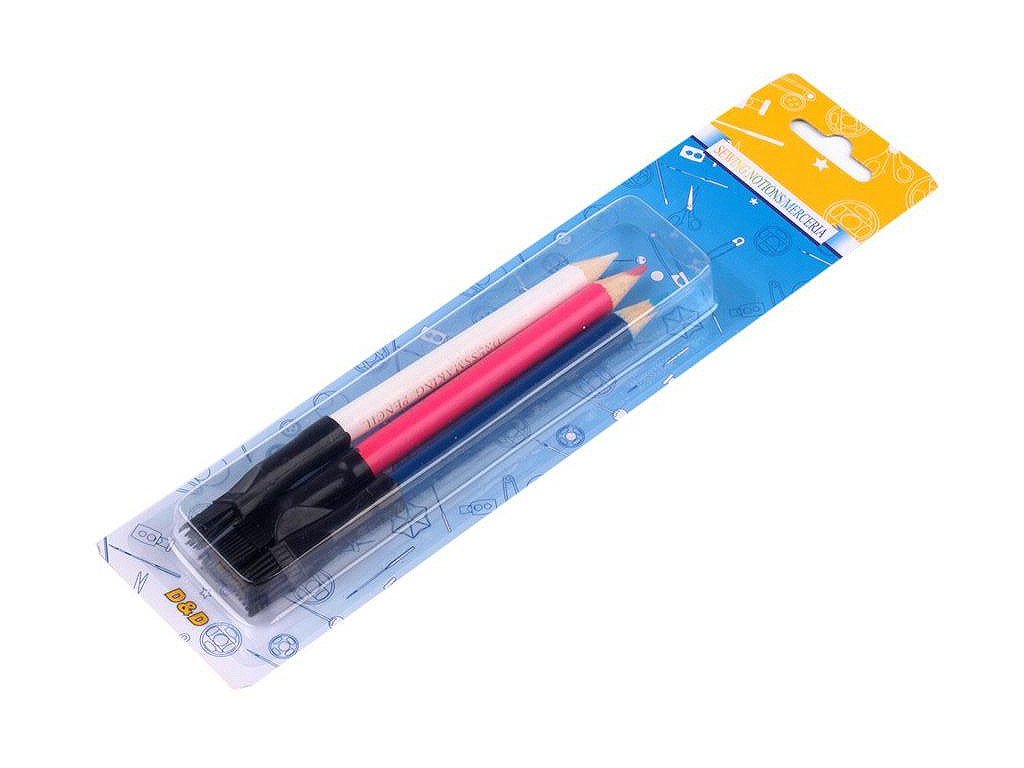 Tužka pro kreslení střihu na látku. Přesnější charakteristika: je tvrdší, a díky tomu se při strouhání neláme. Tato křída v tužce se dobře smazává z látky, ze světlé látky jde barevná tuha ze všech smazat nejlépe. Mix obsahuje 3 ks tužek o délce 10 cm v barvě bílá, modrá, růžová. Tyto krejčovské křídy jsou takto baleny, nelze prodávat po jednotlivých barvách. Rozměr blistru činí 5 x 20 cm (š x v).