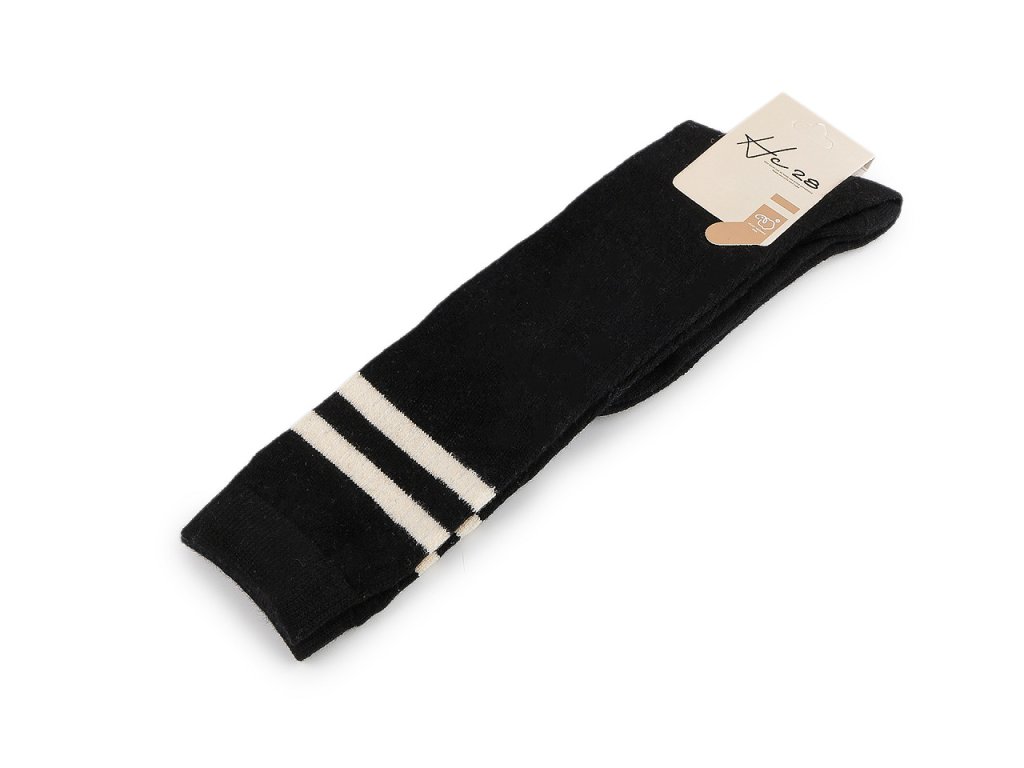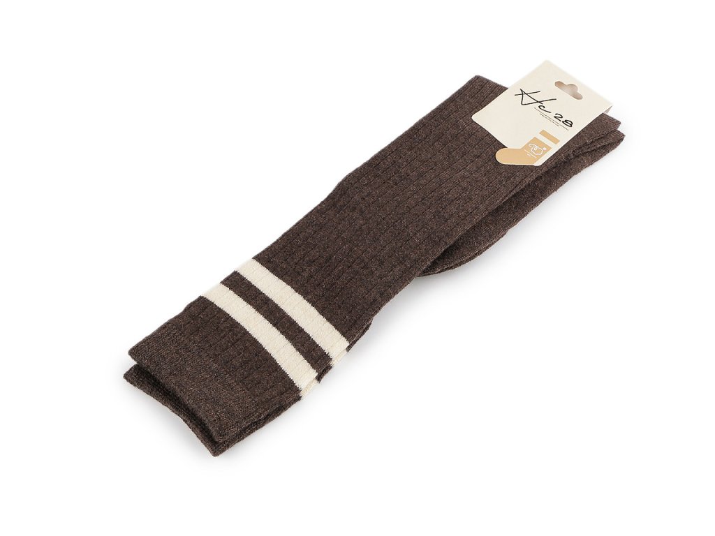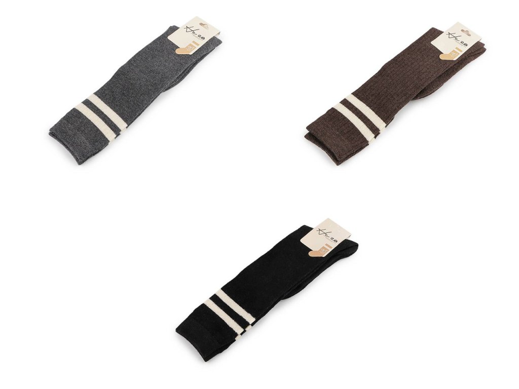 Dámské vlněné podkolenky jsou velice příjemné, zajistí vám skvělou tepelnou pohodu. Elegantní design se dvěma kontrastními pruhy dodává podkolenkám moderní a stylový vzhled. Mají jemné řádkování, nahoře mají pohodlný pružný lem, díky kterému jsou vhodné na každodenní nošení. Skvěle vám poslouží v chladných dnech. Hodí se k minisukním, šortkám nebo šatům, ale poslouží i jako zateplení pod kalhoty a dlouhé sukně.