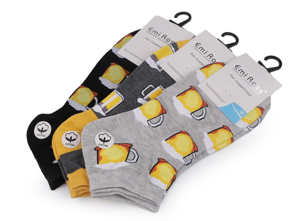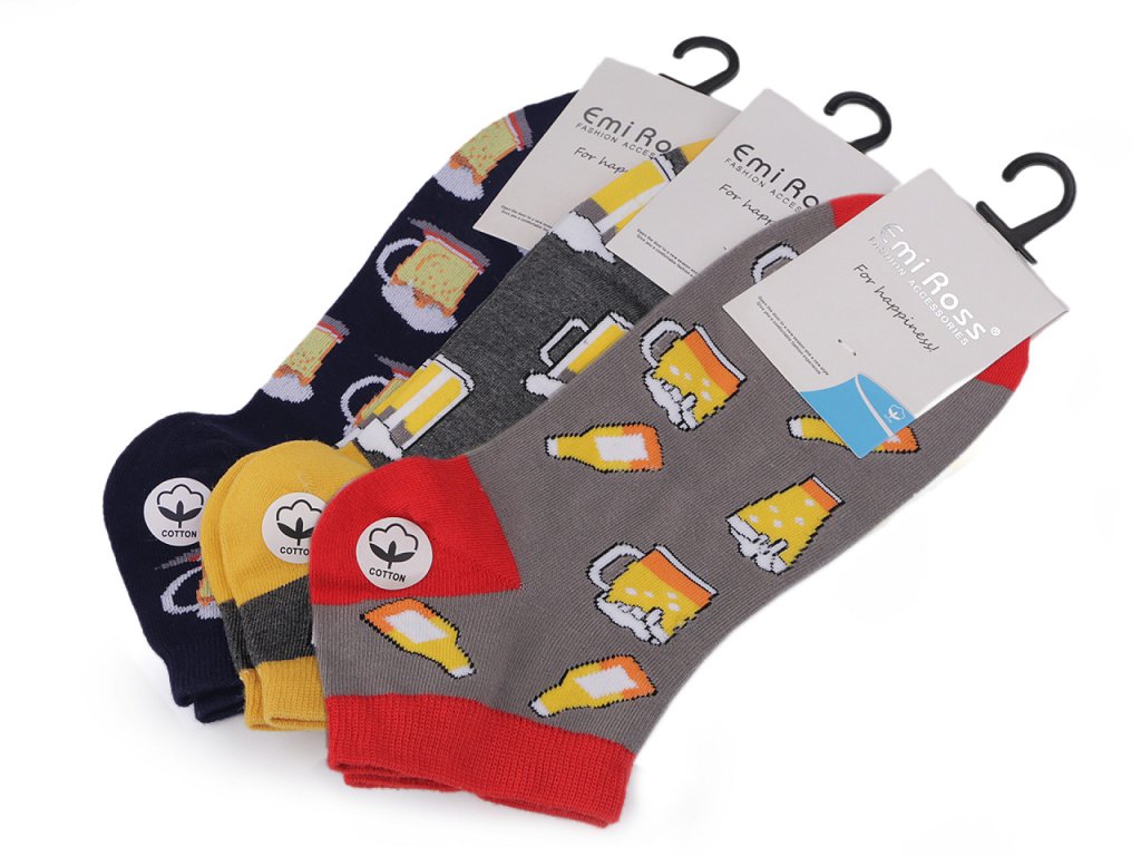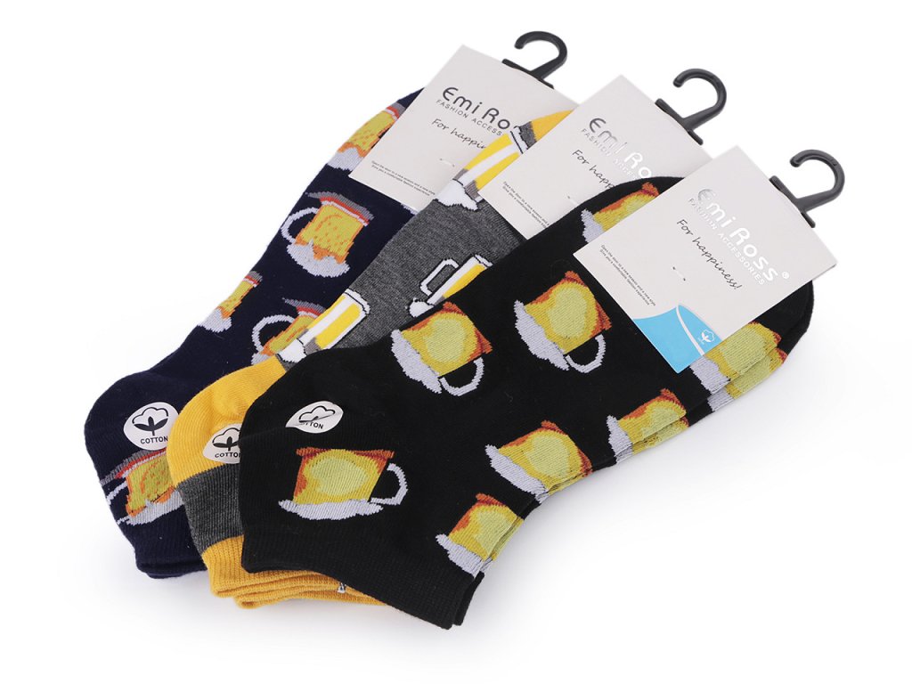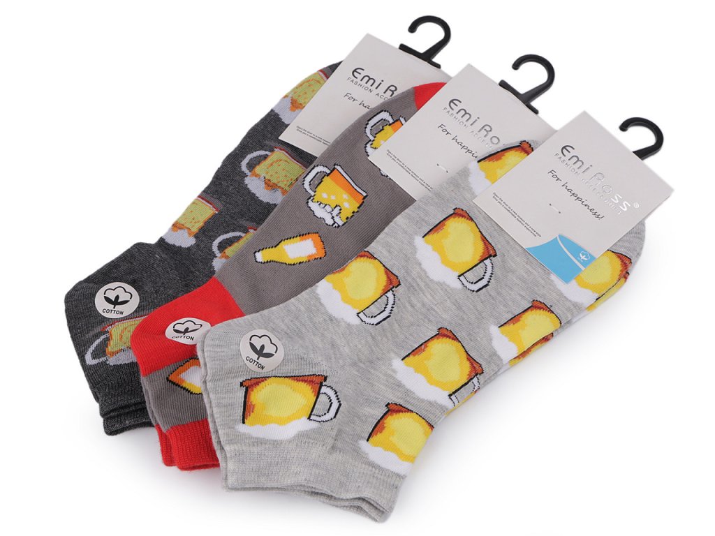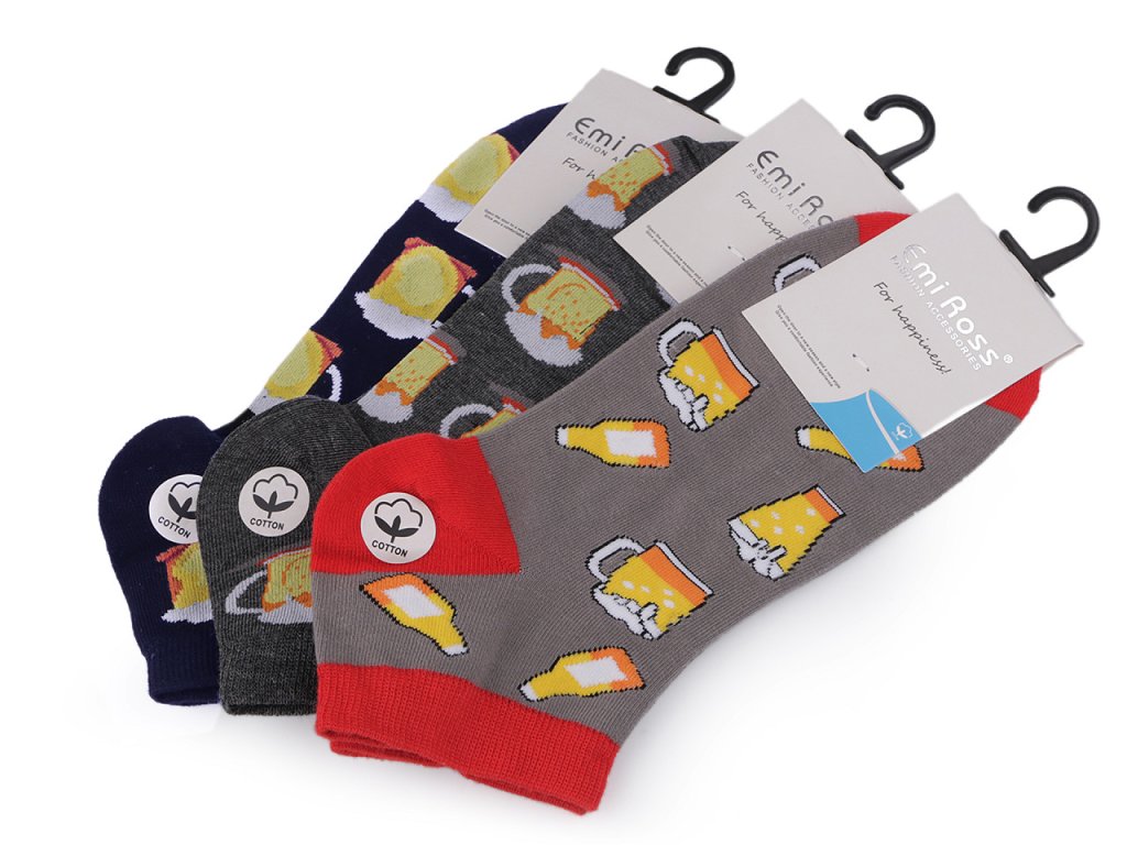 Pánské bavlněné ponožky s obrázky piva jsou hitem. Dokáží pobavit už na první pohled. Hodí se jak do klasických bot tak do sportovních tenisek, vždy vypadají stylově. Příjemně se nosí, jsou vysoké, pružné a prodyšné. Ve špičce mají pohodlný plochý šev, netlačí.