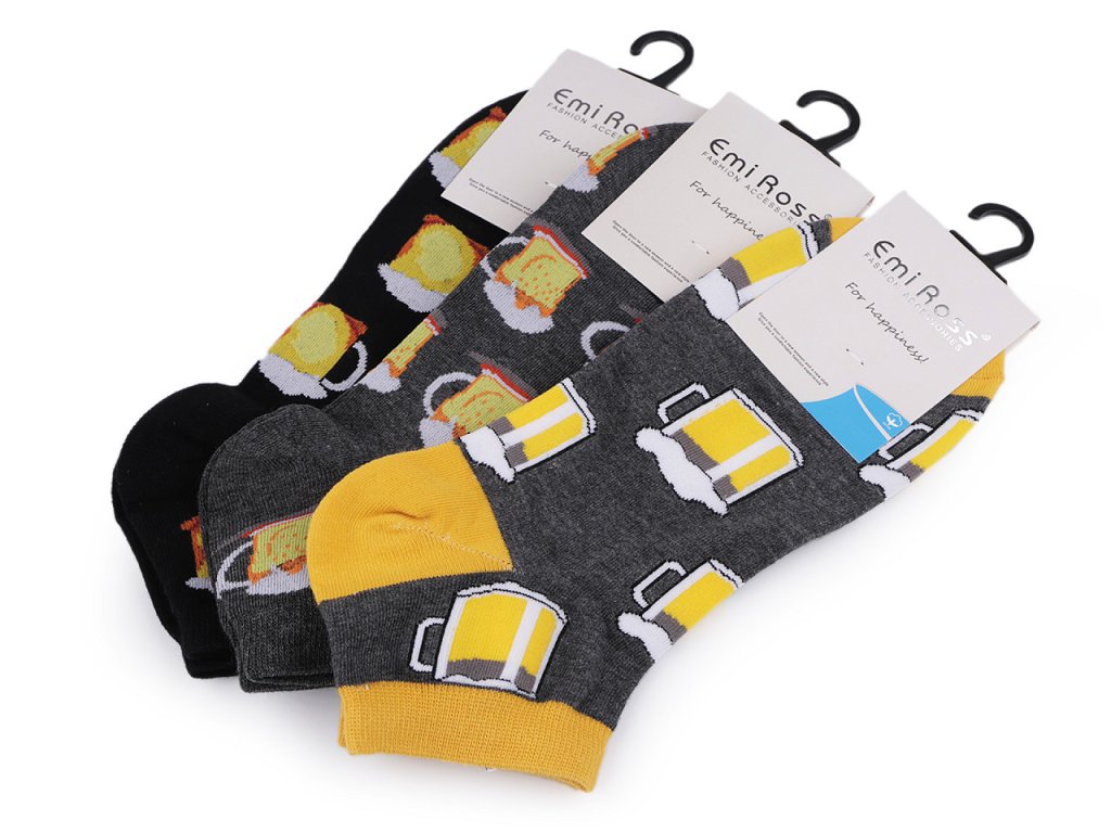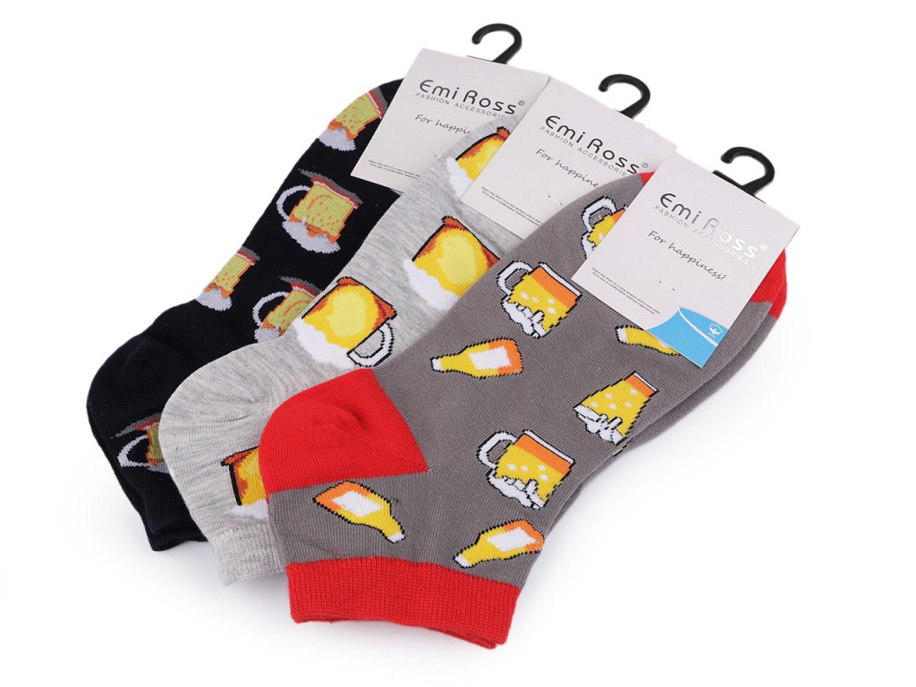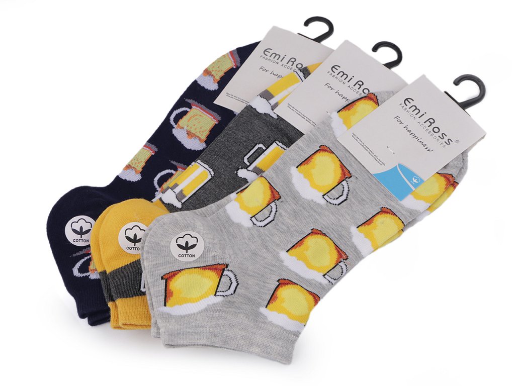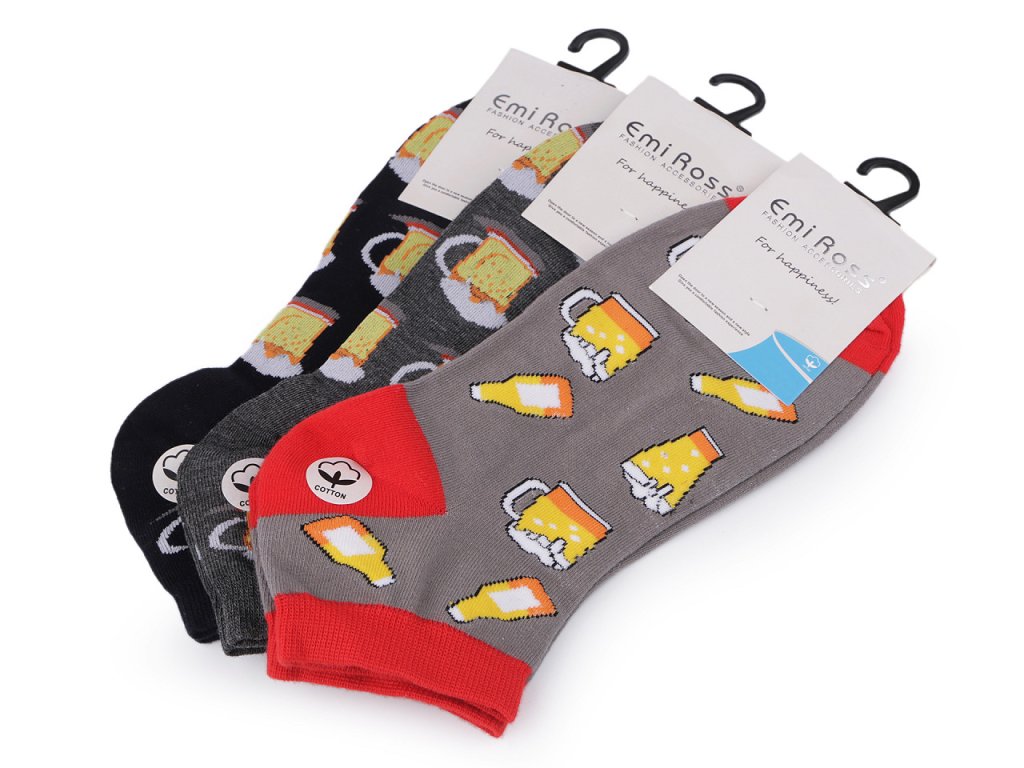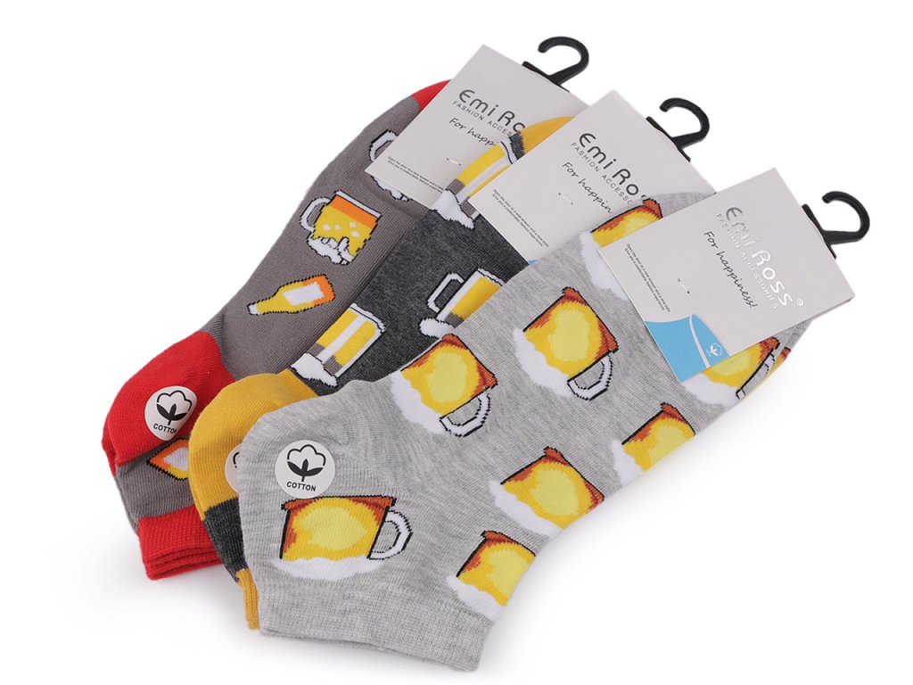 Pánské bavlněné ponožky s obrázky piva jsou hitem. Dokáží pobavit už na první pohled. Hodí se jak do klasických bot tak do sportovních tenisek, vždy vypadají stylově. Příjemně se nosí, jsou vysoké, pružné a prodyšné. Ve špičce mají pohodlný plochý šev, netlačí.